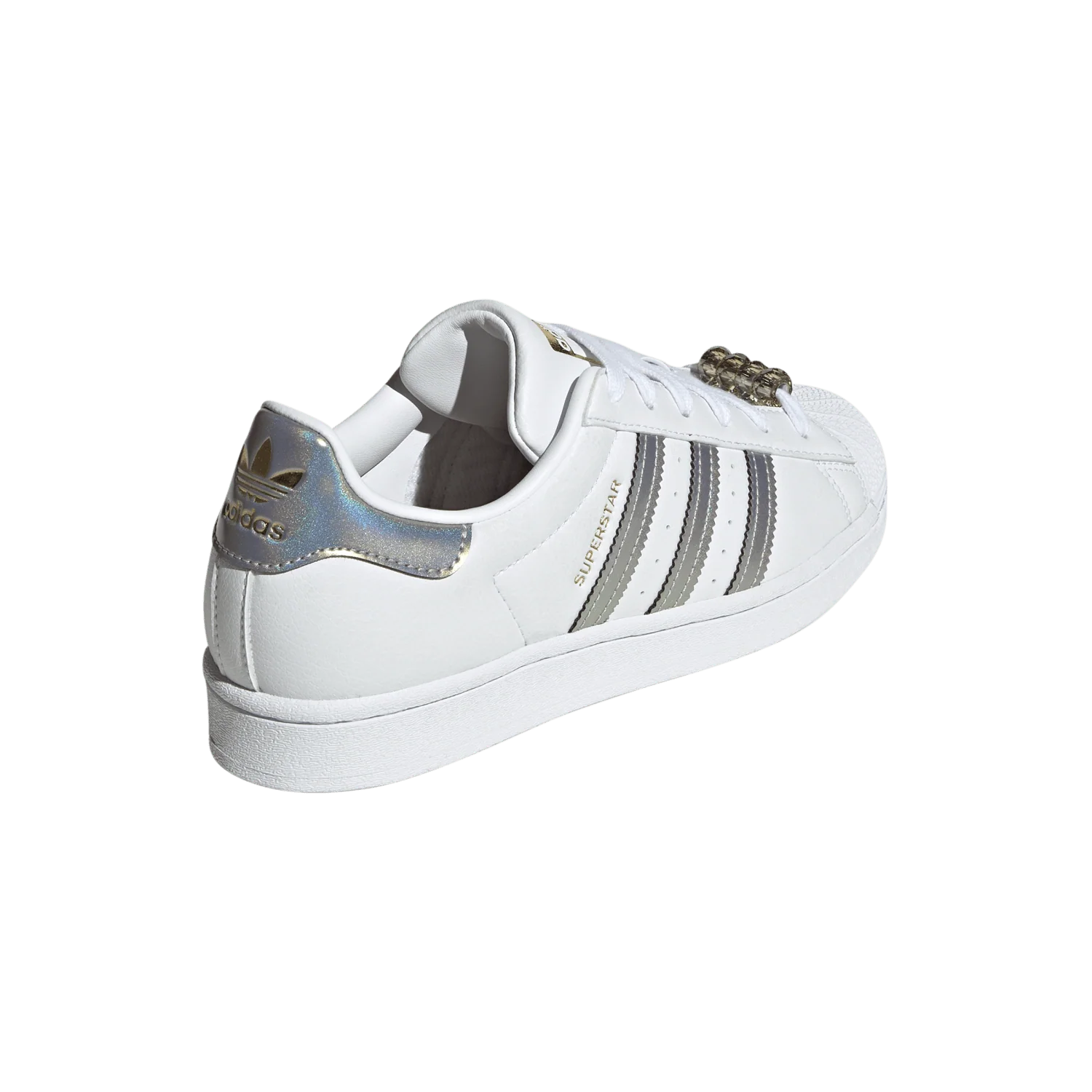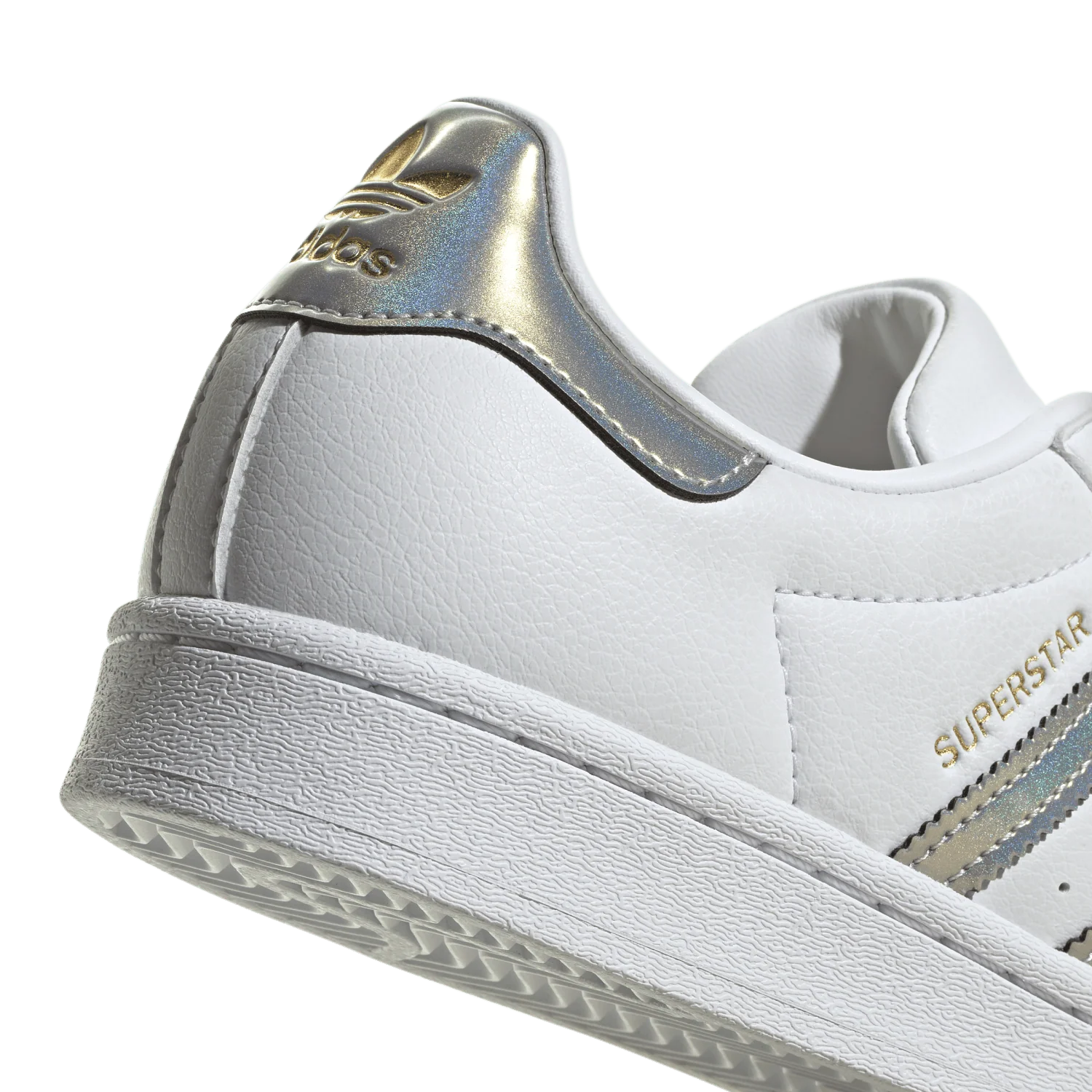 Va plus loin. Mets tes créoles dorées et ta combinaison la plus chic. Ce soir, tu vas briller. La chaussure adidas Superstar incarne l’expression de soi depuis plus de 50 ans. Cette version affiche des détails dorés ultra stylés. Enfile-la, et affirme ta vraie personnalité.