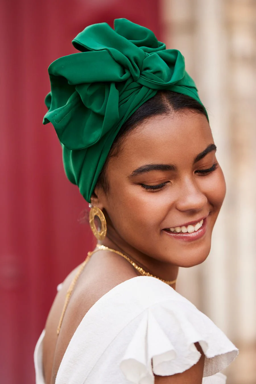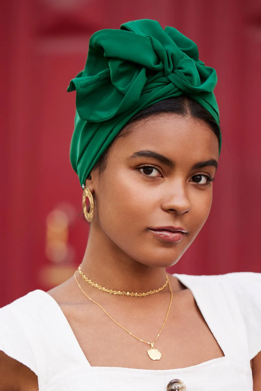Avec sa teinte vert forêt, ce turban apporte une élégance naturelle et raffinée à votre style. Sa couleur profonde et apaisante est parfaite pour celles qui aiment les teintes riches et intemporelles.