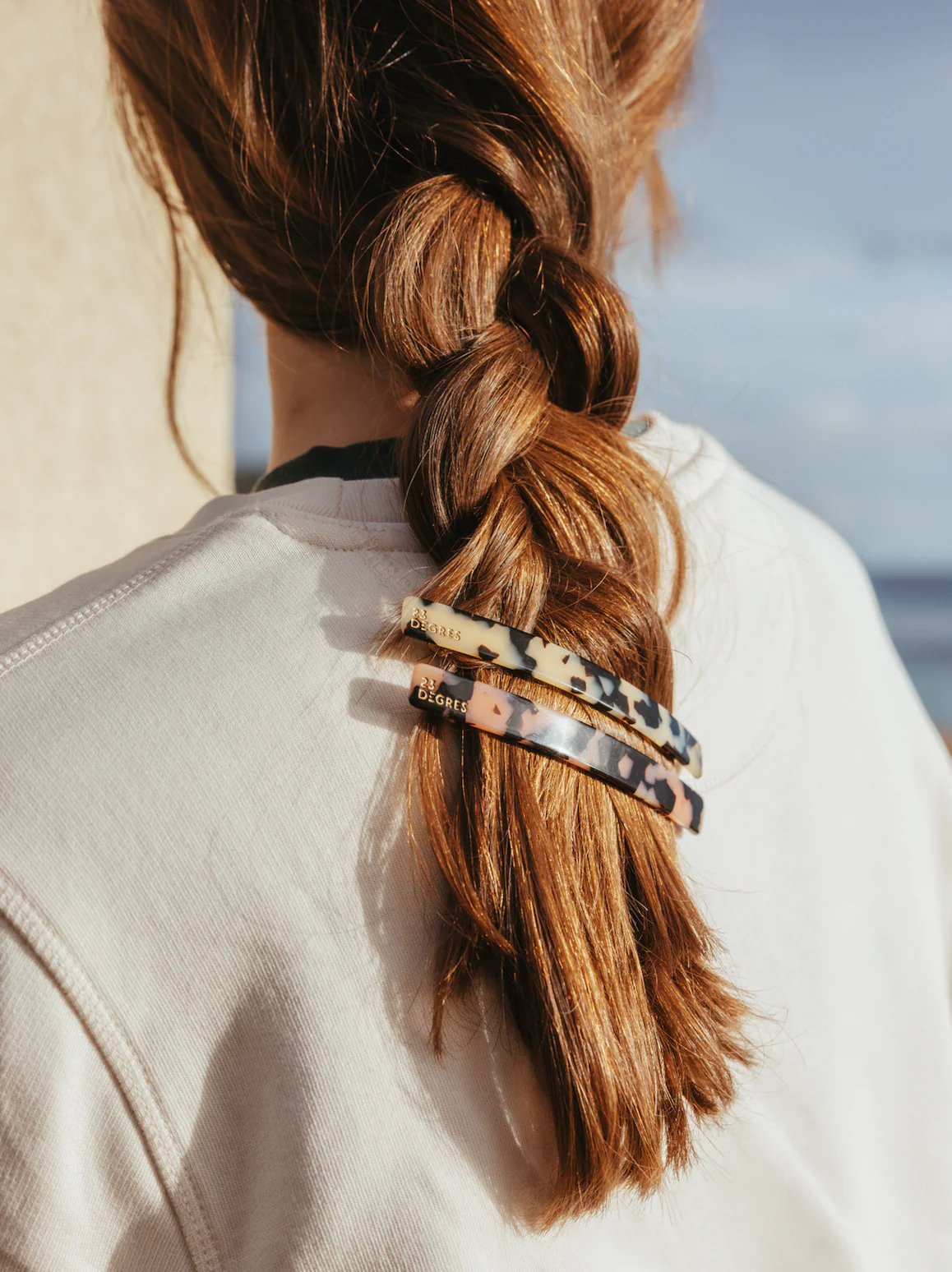 Fabriquée à la main avec soin dans le Jura 🇫🇷, cette barrette fine est réalisée en acétate de cellulose, un matériau végétal durable issu des fibres de coton et du bois.
