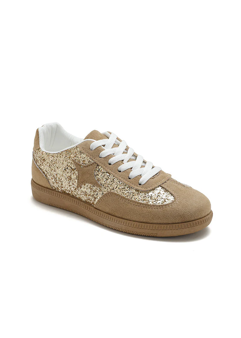 Baskets Kaki Dorées Femme – Paillettes & Étoile Glitter