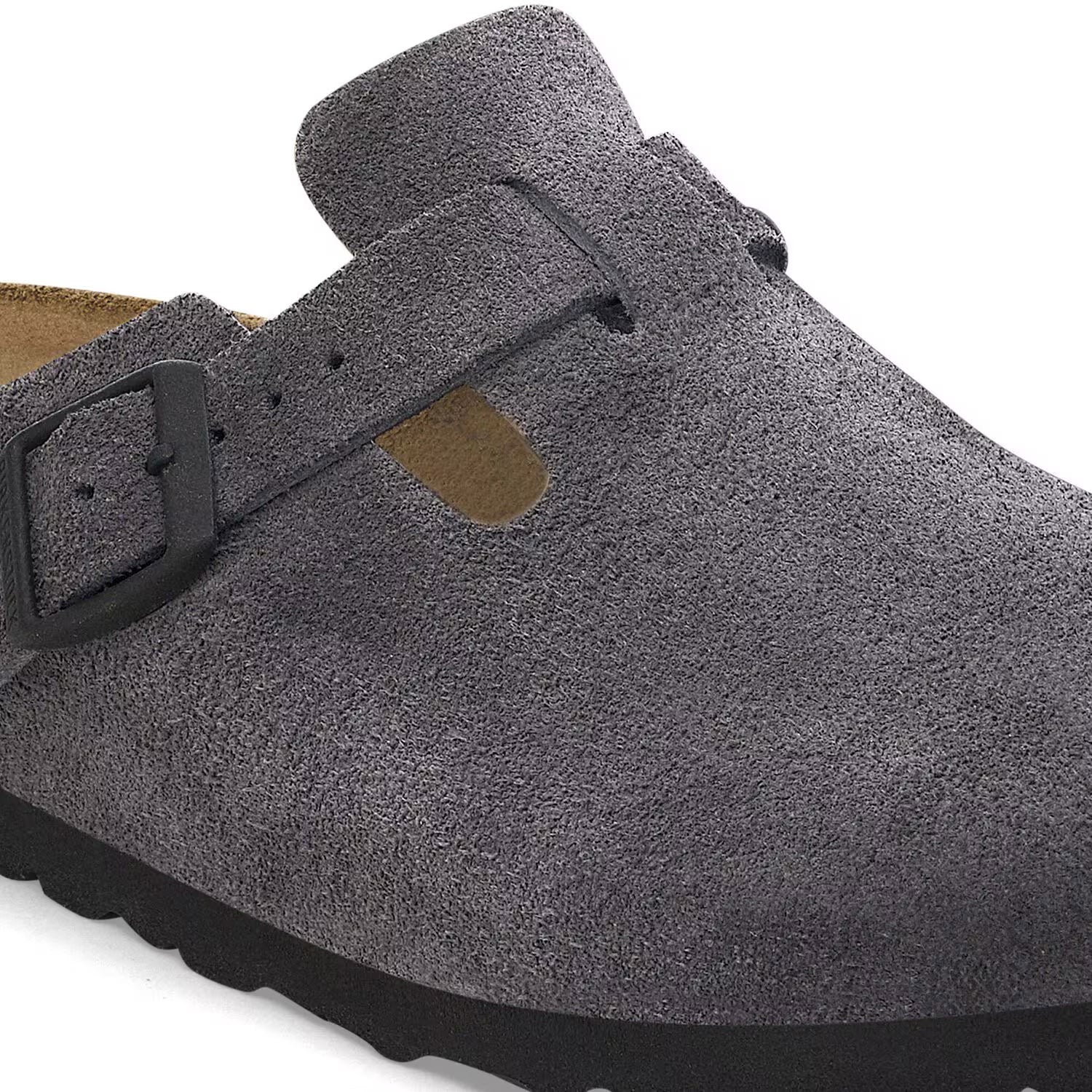 Glissez-vous dans la définition du confort avec les sabots Birkenstock Boston en suède gris.