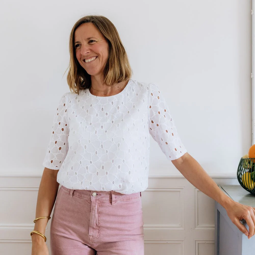 – Blouse en broderie anglaise à manches courtes