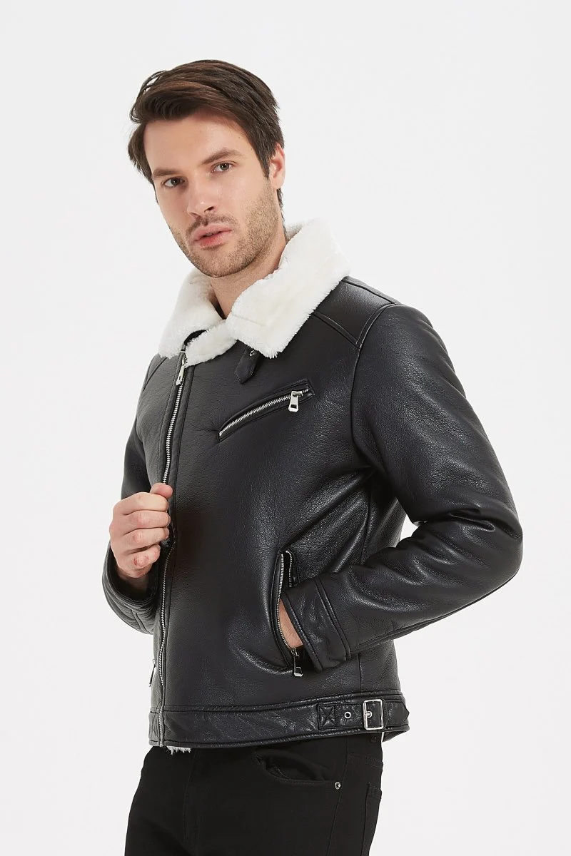 Blouson style perfecto. Modèle chaud d’hiver. Tissu simili cuir. Col perfecto en polaire avec sangle pressionnée. Doublure 100% polaire. Fermetures en biais avec zip métallique. 2 poches zippées sur les côtés. 1 poche zippée sur la poitrine. Coutures apparentes sur les épaules. Sangles décoratives à la taille. Doublure polaire assortie au col.