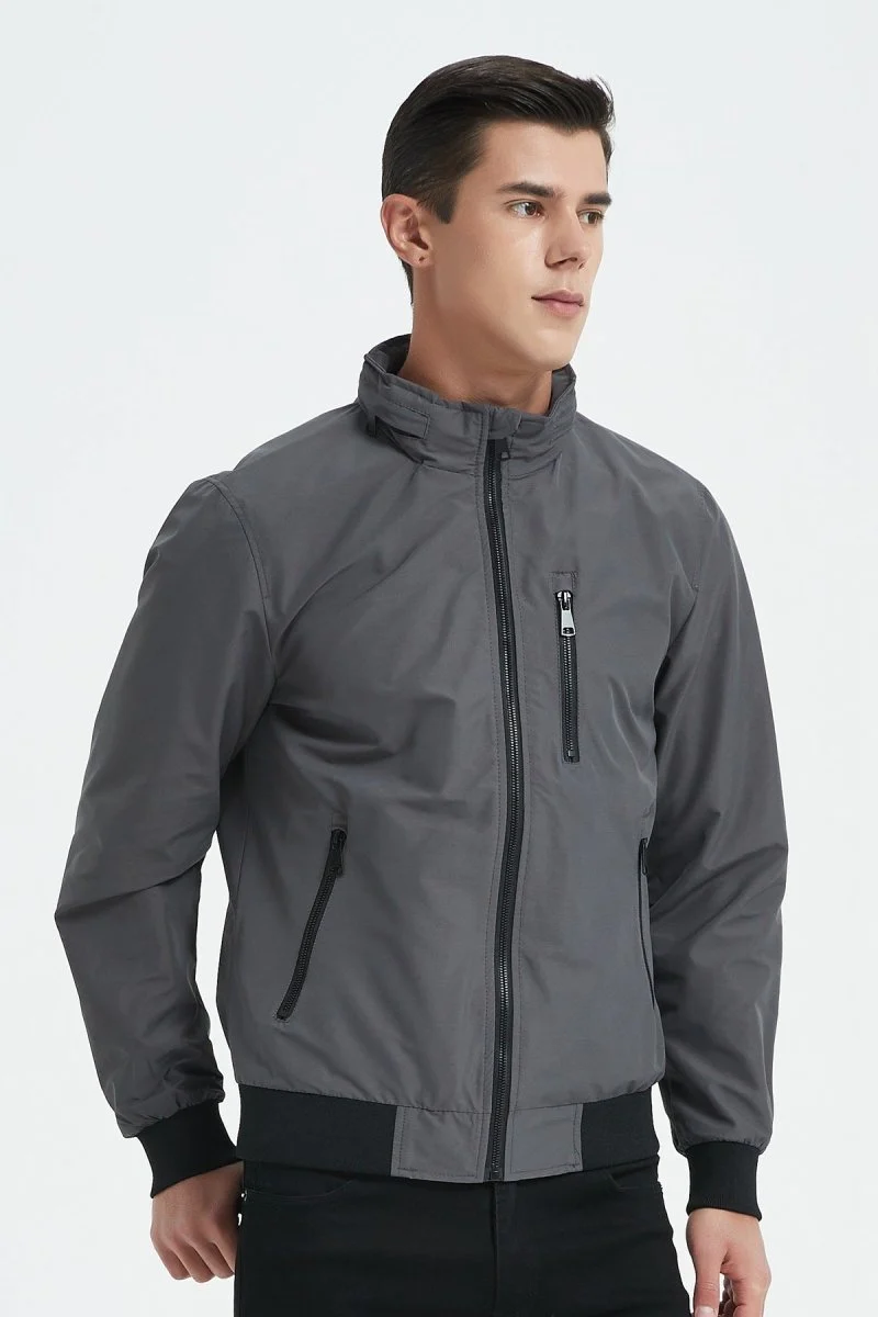 Blouson court au col montant rond pour homme