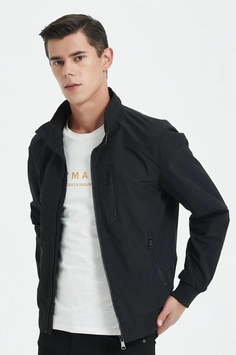 Blouson court au col montant rond pour homme