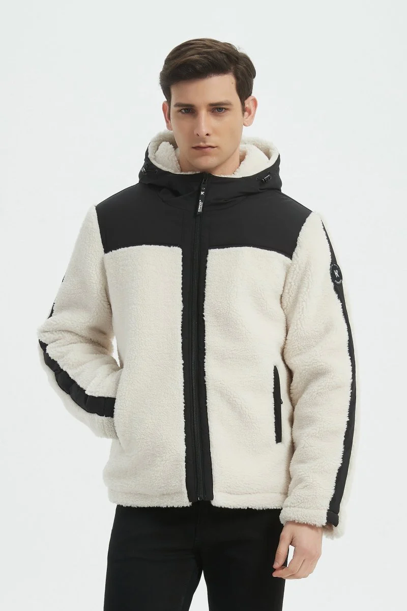 Blouson Homme à Capuche en Sherpa avec Empiècements Contrastés