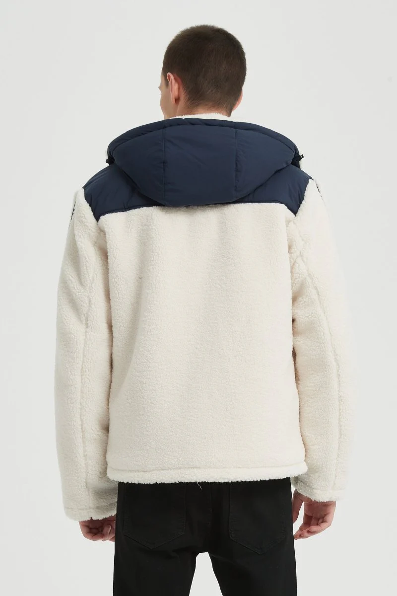 Blouson Homme à Capuche en Sherpa avec Empiècements Contrastés