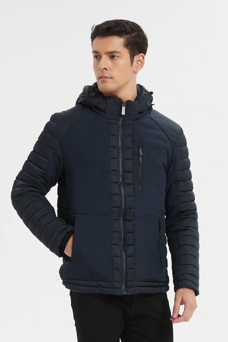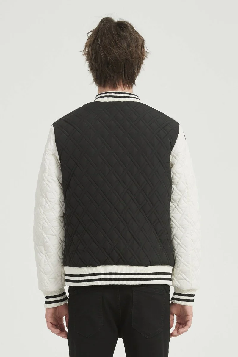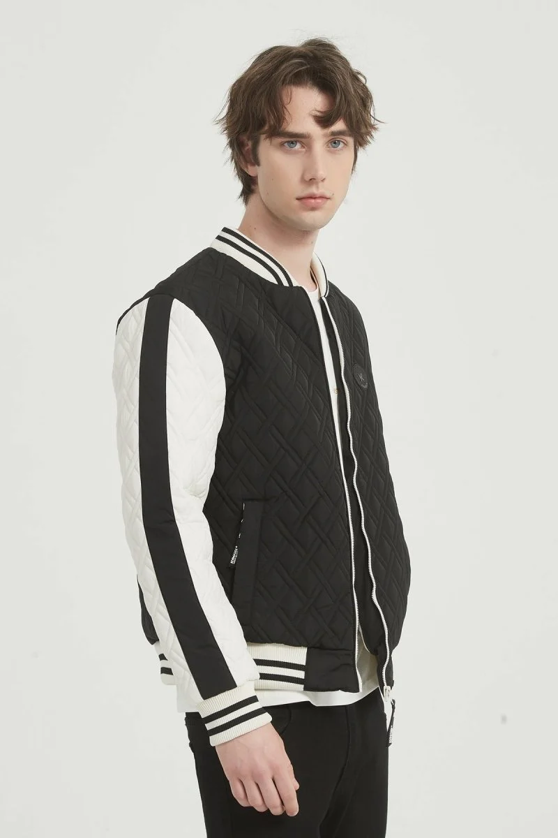 Blouson matelassé homme au look sportif, avec manches contrastées, bandes rayées et finition col teddy. Fermeture zippée, poches latérales discrètes et badge logo sur la poitrine pour une touche urbaine. Coupe ajustée confortable, idéale pour un style casual affirmé.