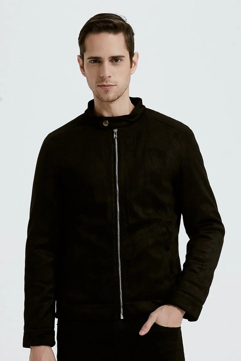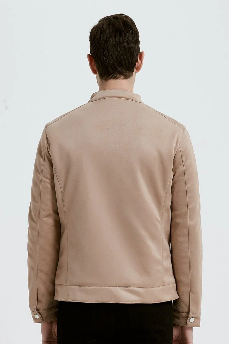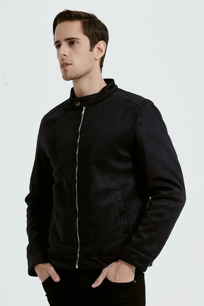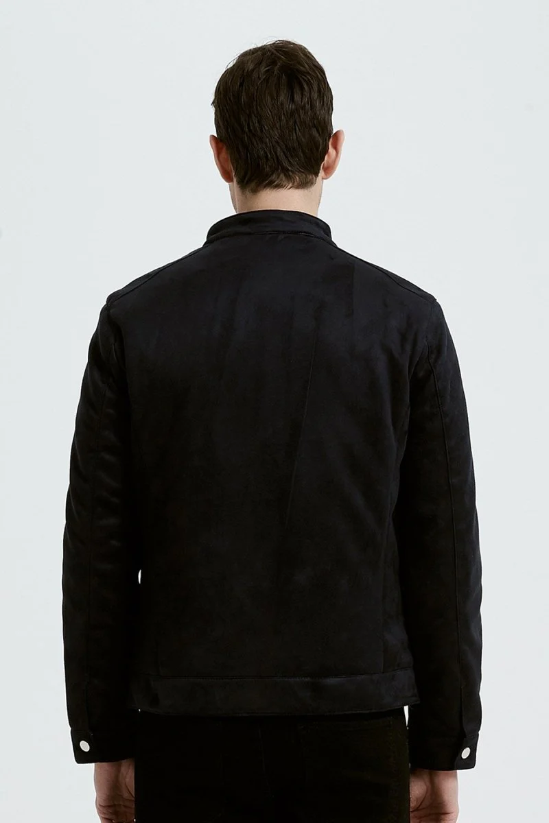 Matière suédine toucher doux. Col montant type officier. Fermeture à pression. 2 poches passepoilées à pression. 2 poches à l’intérieur. Doublure matelassée.