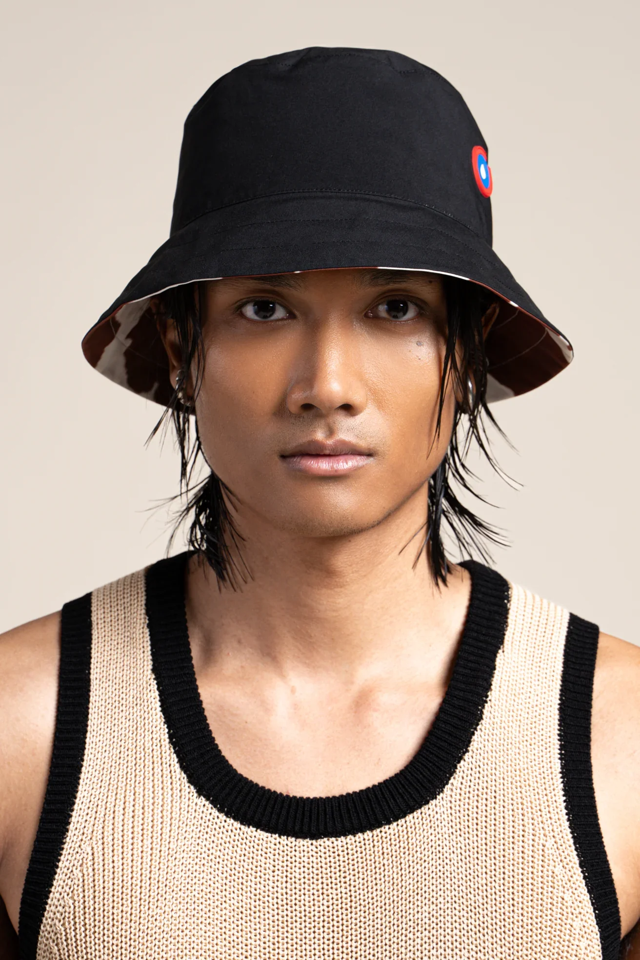 Bob réversible et imperméable. Tissu en polyester recyclé. Idéal pour la pluie comme le soleil.