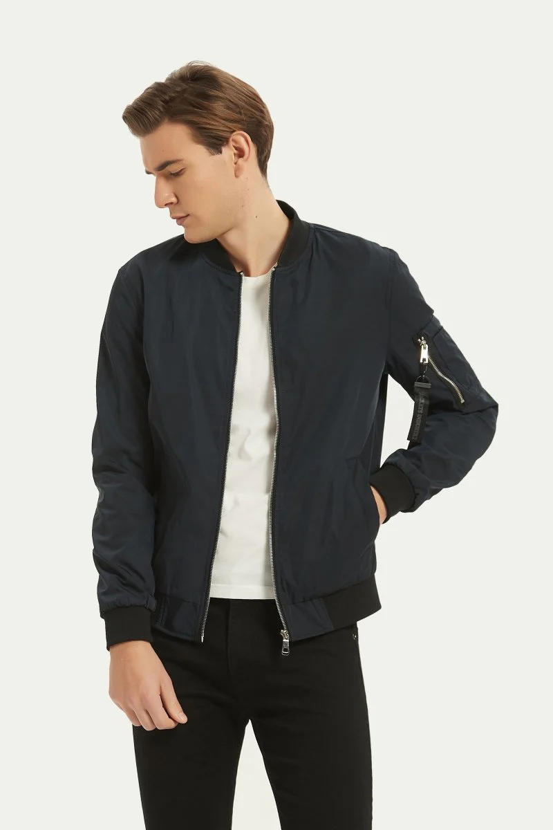 Bomber en coton de mi-saison, 2 poches sur les côtés, Fermeture à glissière en métal, Col teddy en bord-côte, 2 poches sur les côtés, Tissu déperlant « Water Repellent Technology ».