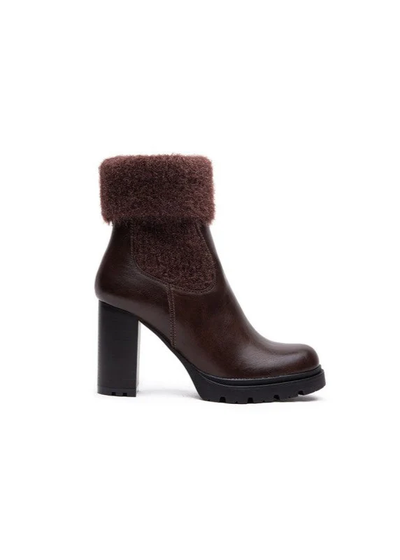 Bottines Marron Femme – Talon Haut & Revers Maille Douillette