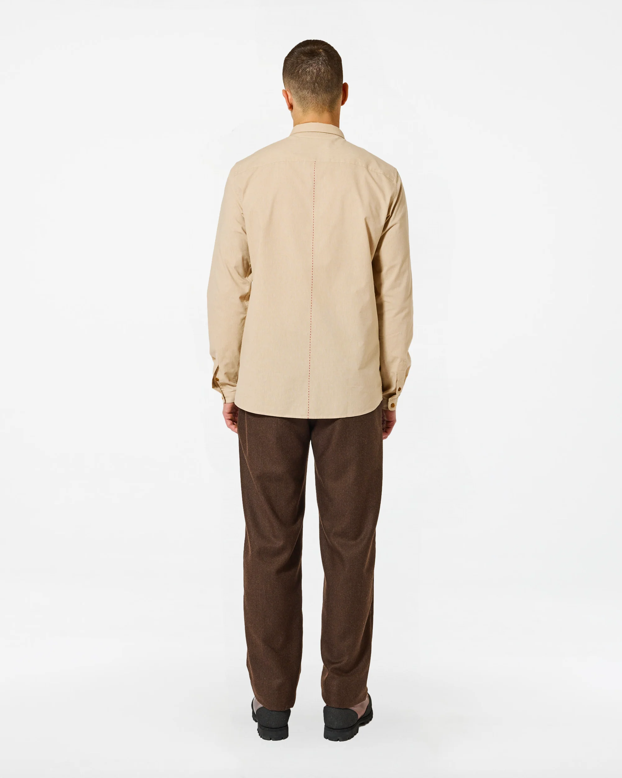 La chemise Pala Connie en beige, une teinte douce et intemporelle. Sa coupe classique garantit un confort optimal, tandis que les poignets courts arrondis insufflent une touche de modernité. La couture rouge au dos, signature Homecore, crée un contraste subtil et distinctif. À l’intérieur, un empiècement contrastant vient parfaire les finitions avec soin. Une pièce essentielle du vestiaire masculin, idéale pour un look élégant du matin au soir.