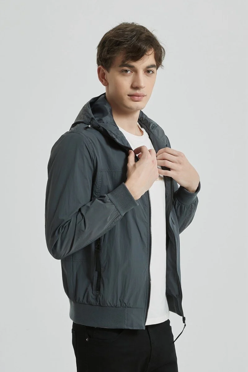 Veste uni légère et compacte de mi-saison. Matière déperlante « Technology Water Repellent ». Poches zippées imperméables. Capuche intégrée avec cordon de serrage. Une poche intérieur au niveau de la poitrine gauche.