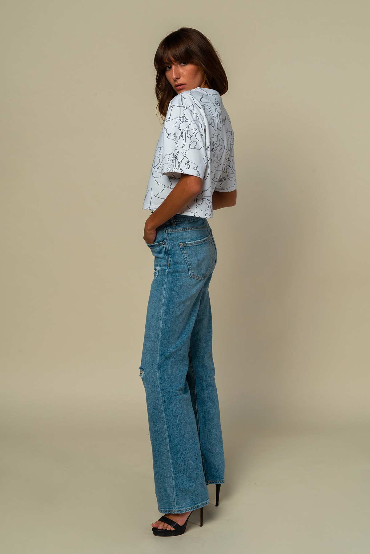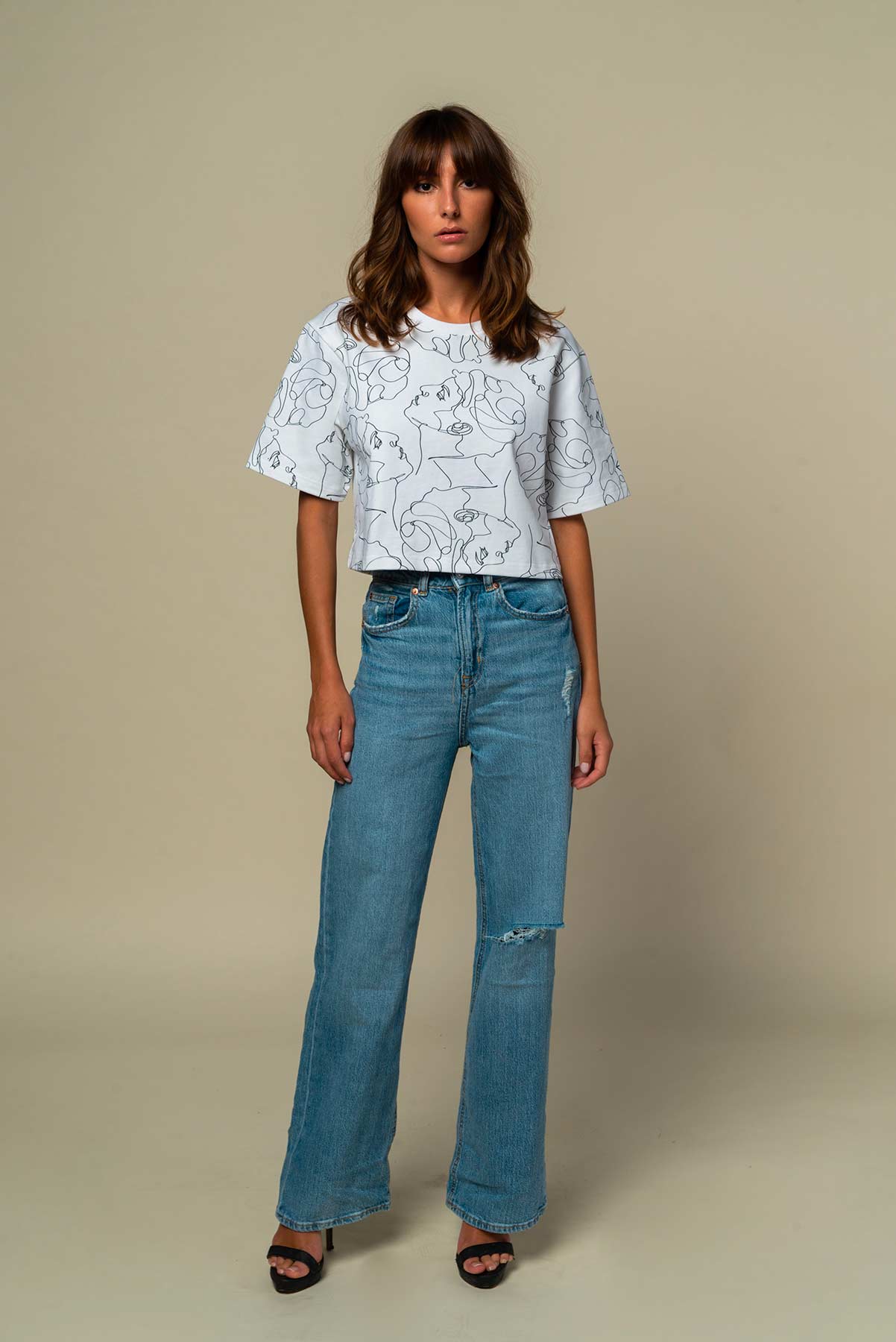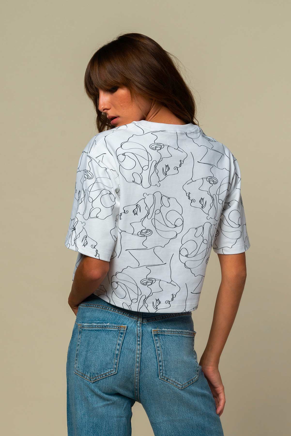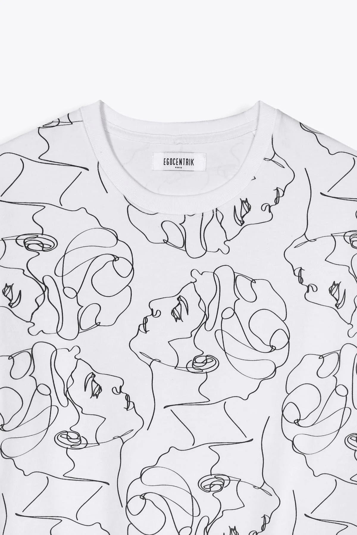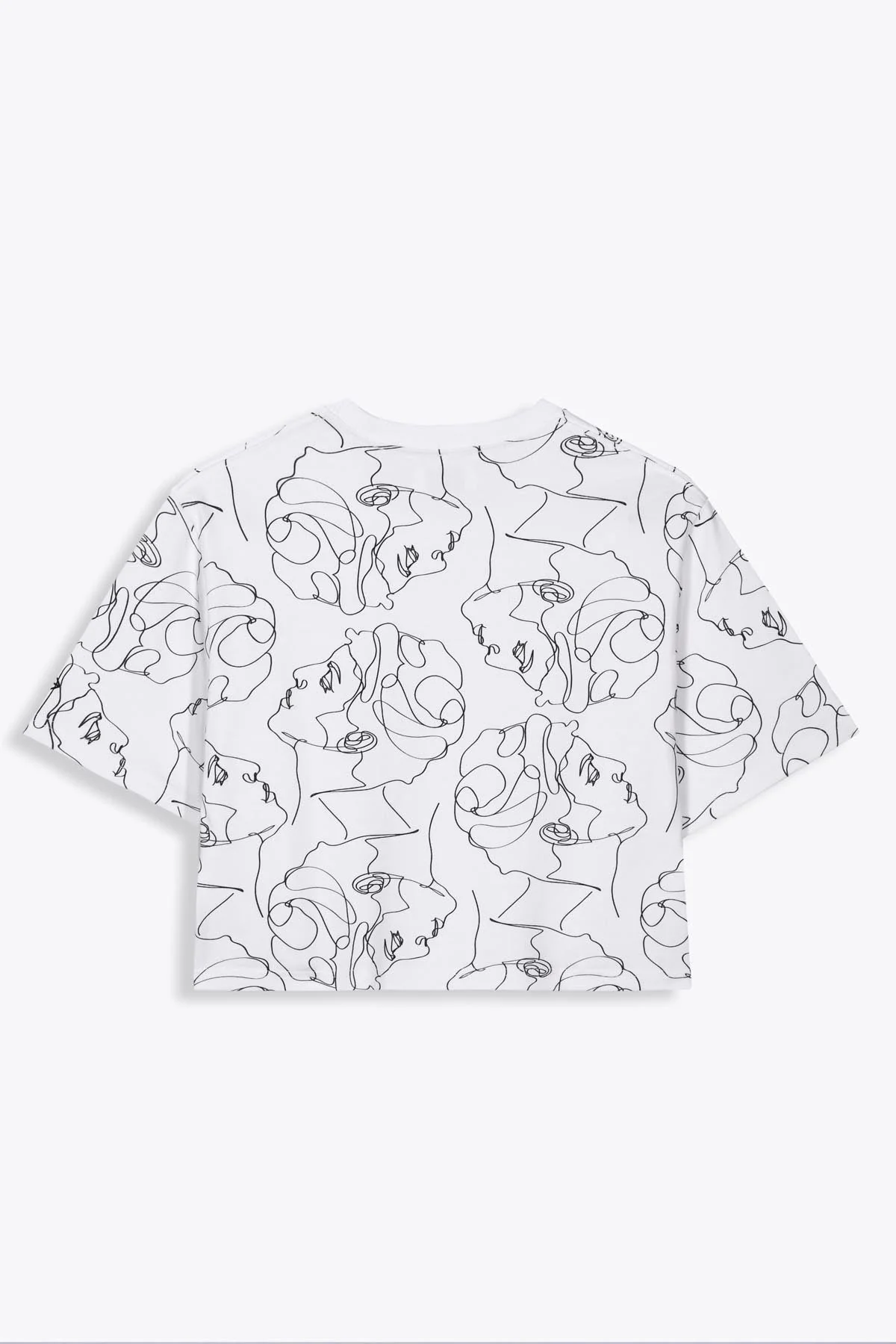 Ce Crop-top confectionné en coton jersey 380gr de couleur blanche, reprend les codes du ‘ Line Art ‘ pour un design épuré avec ses broderies délicates.