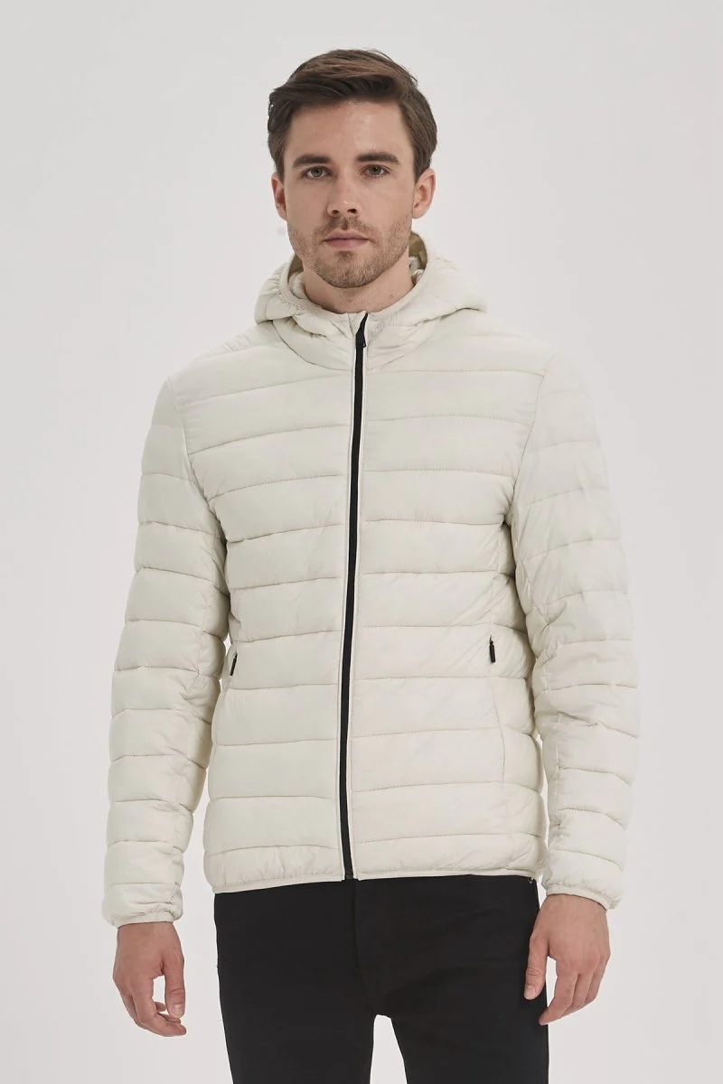 Une doudoune homme mi-saison. Coupe courte ajustée. Capuche fixe intégrée et col montant matelassé. Tissu déperlant Technologie Water Repellent. Piqûres en bandes moyennes. Deux poches invisibles sur les côtés. Doublure simple avec 2 poches intérieures.