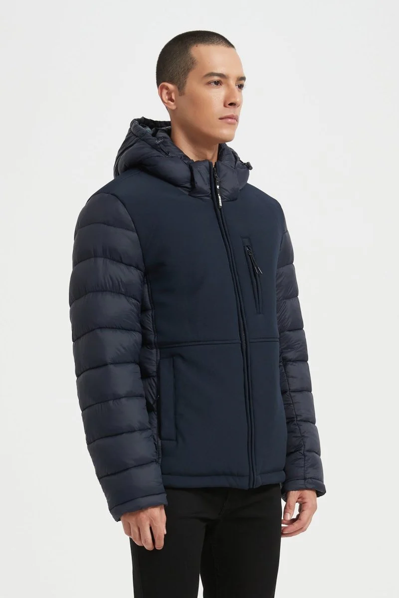 Cette doudoune est une pièce idéale pour affronter l’hiver tout en restant stylé. Son design moderne associe un corps en tissu lisse à des manches et un dos matelassés, pour un rendu visuellement structuré et dynamique.