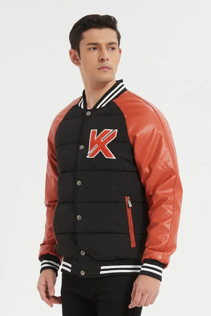 Bomber doudoune bouffant, Buste matelassé et manches contrastées, Col croisé à l’avant du modèle, Bord-côte à bandes au col, à la taille et aux poignets, Tissu déperlant « Water Repellent Technology », Logotype Kymaxx en tissu sur la poitrine, 2 poches zippées sur les côtés finitions blanches.