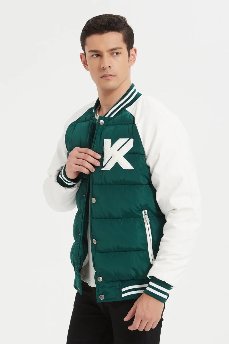 Bomber doudoune bouffant, Buste matelassé et manches contrastées, Col croisé à l’avant du modèle, Bord-côte à bandes au col, à la taille et aux poignets, Tissu déperlant « Water Repellent Technology », Logotype Kymaxx en tissu sur la poitrine, 2 poches zippées sur les côtés finitions blanches.