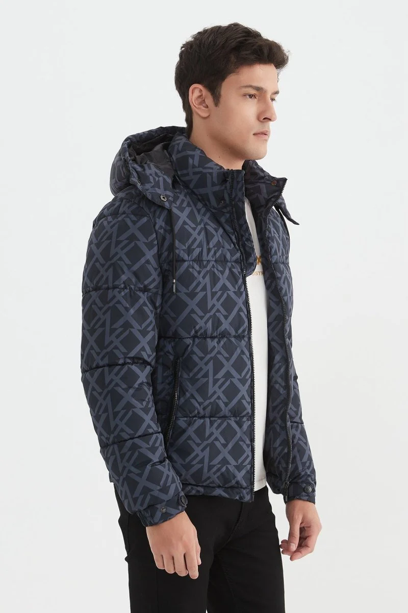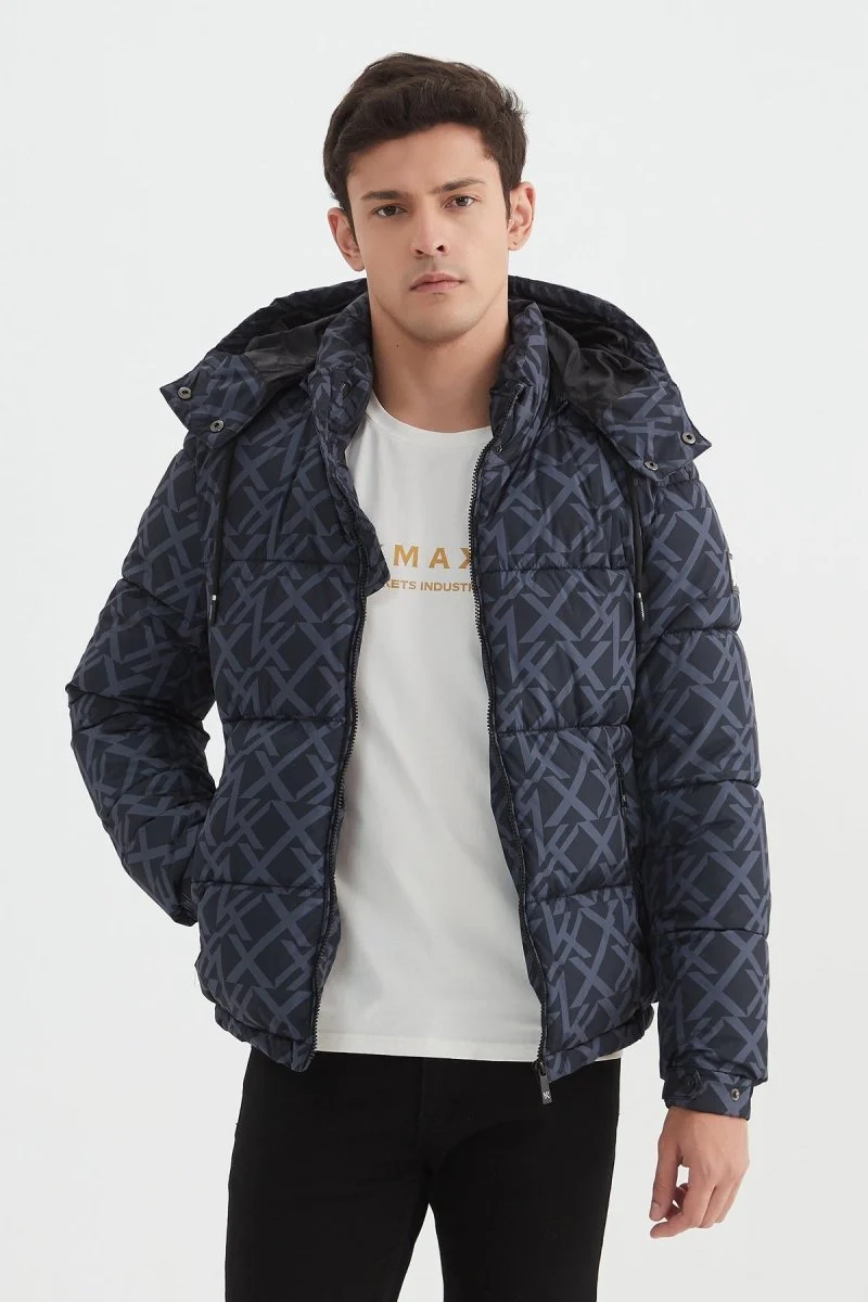 Doudoune bouffante. 2 poches zippées sur les côtés. Fermeture éclair avec boutons à pression. Matelassage en bandes. Col montant. Capuche amovible à zip avec cordon de serrage. Un bouton pression au niveau du poignet. Une poche intérieur à zip. doublure simple. Logotype Kymaxx sur le bras gauche.