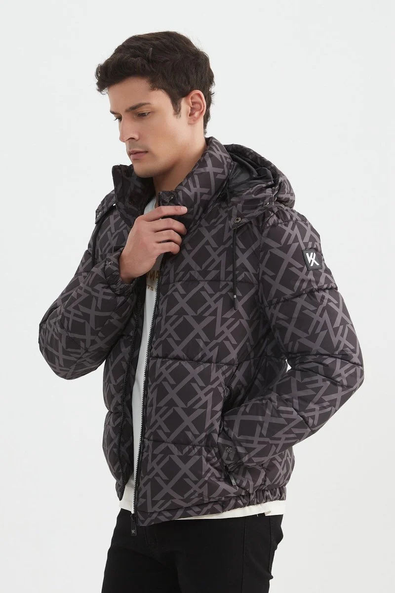 Doudoune bouffante. 2 poches zippées sur les côtés. Fermeture éclair avec boutons à pression. Matelassage en bandes. Col montant. Capuche amovible à zip avec cordon de serrage. Un bouton pression au niveau du poignet. Une poche intérieur à zip. doublure simple. Logotype Kymaxx sur le bras gauche.