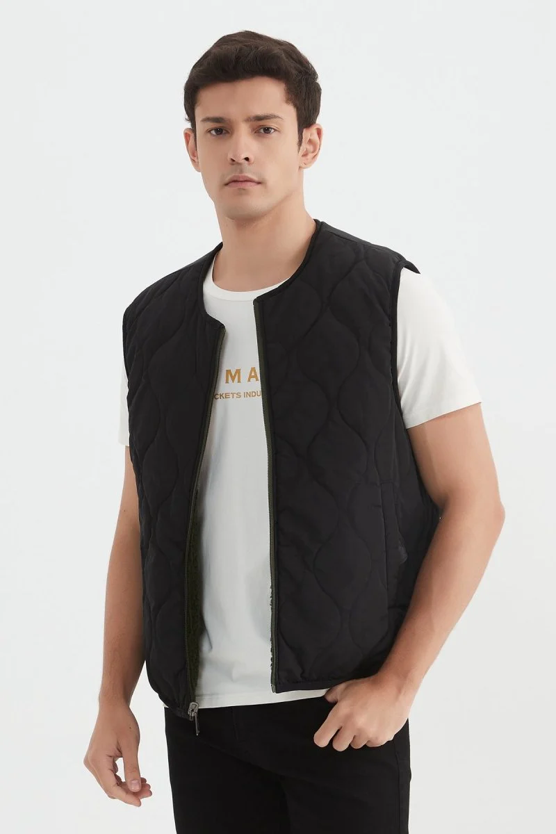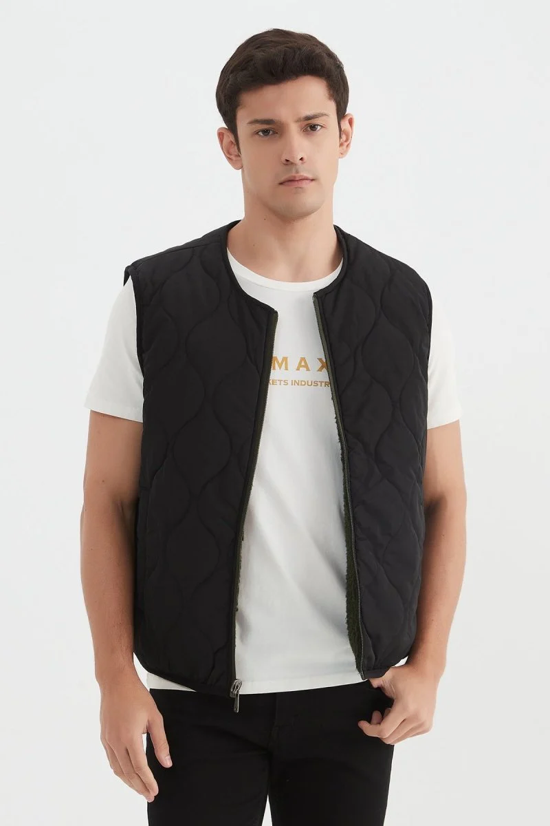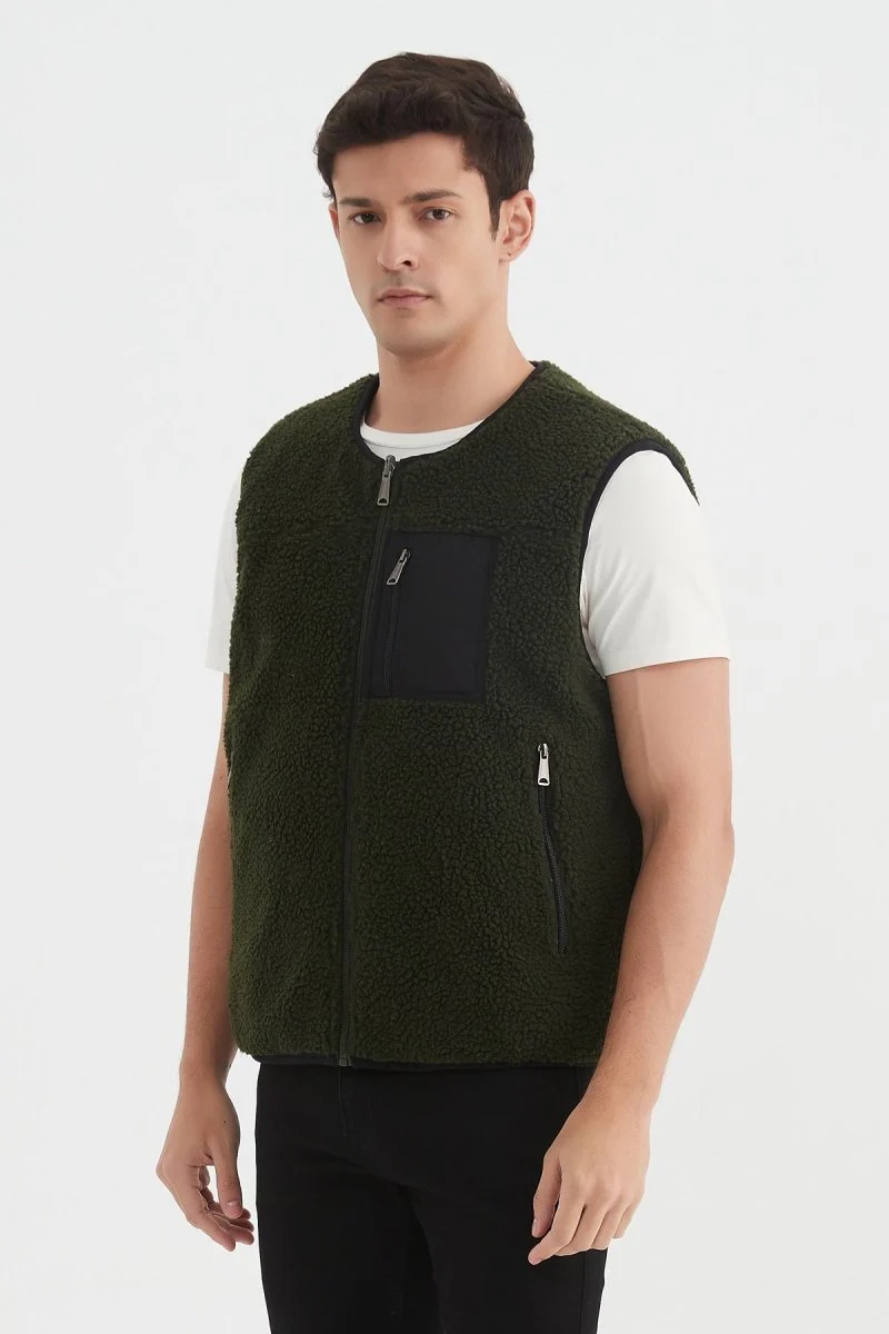 Gilet réversible. Une face doudoune . Une face fourrée. 2 poches zippées sur les côtés. 1 poche zippée sur le torse de la face moutonnée. Zip spécial double face.
