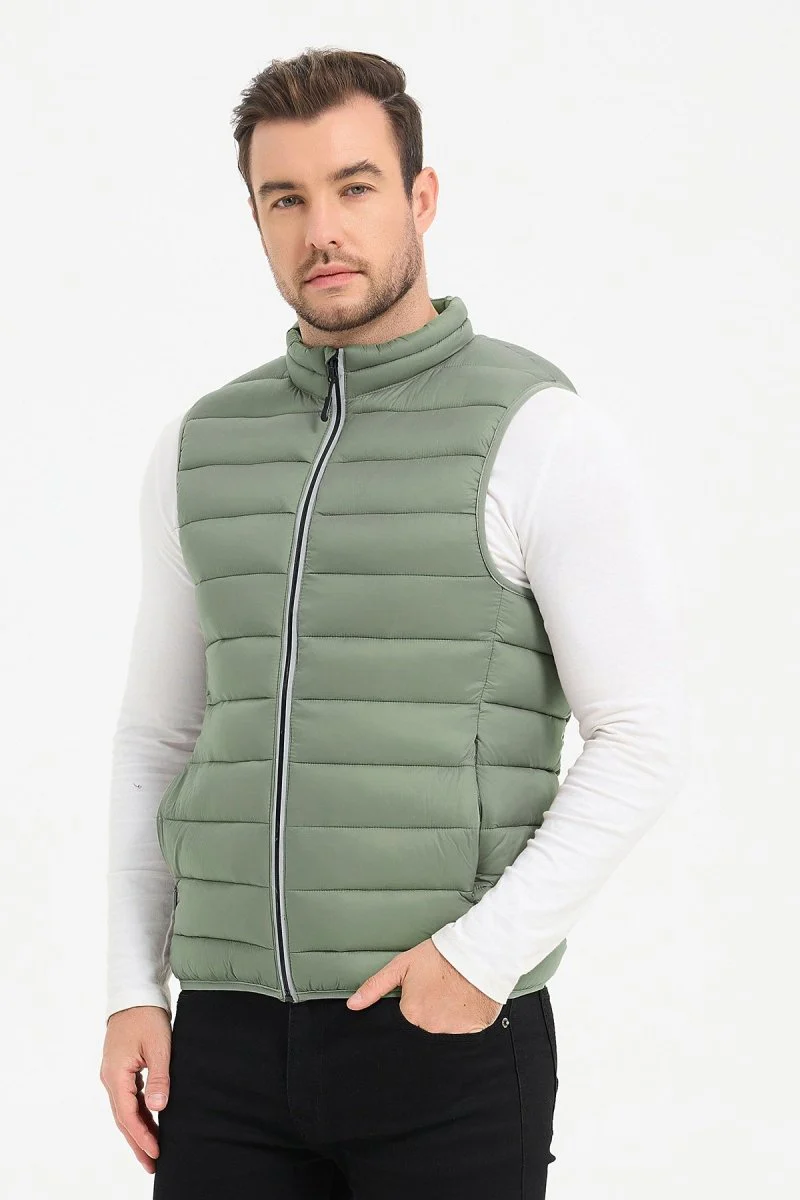 Doudoune sans manches, modèle mi-saison léger et compact, Coupe courte ajustée, Col montant couvrant, Piqûres en bandes moyennes, Tissu déperlant « Technology Water Repellent », 2 poches zippées invisibles sur les côtés, Doublure assortie avec poche intérieure, fermeture éclair plastique avec bandes réfléchissantes.