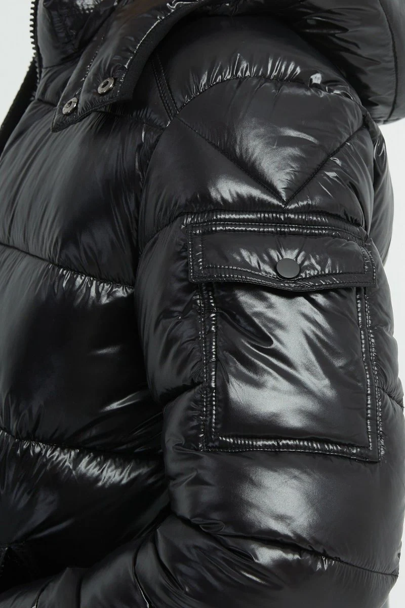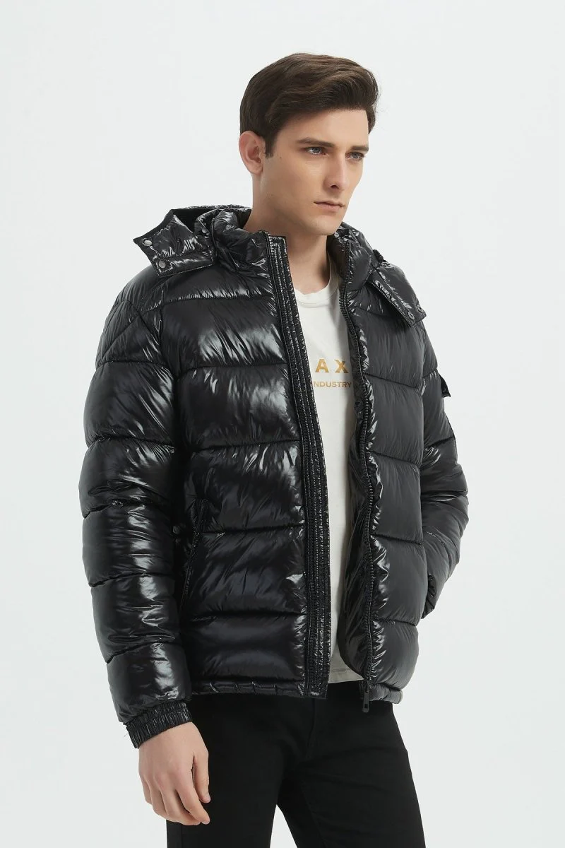 Doudoune Homme Noir Foncé Brillante avec Capuche ALBIN