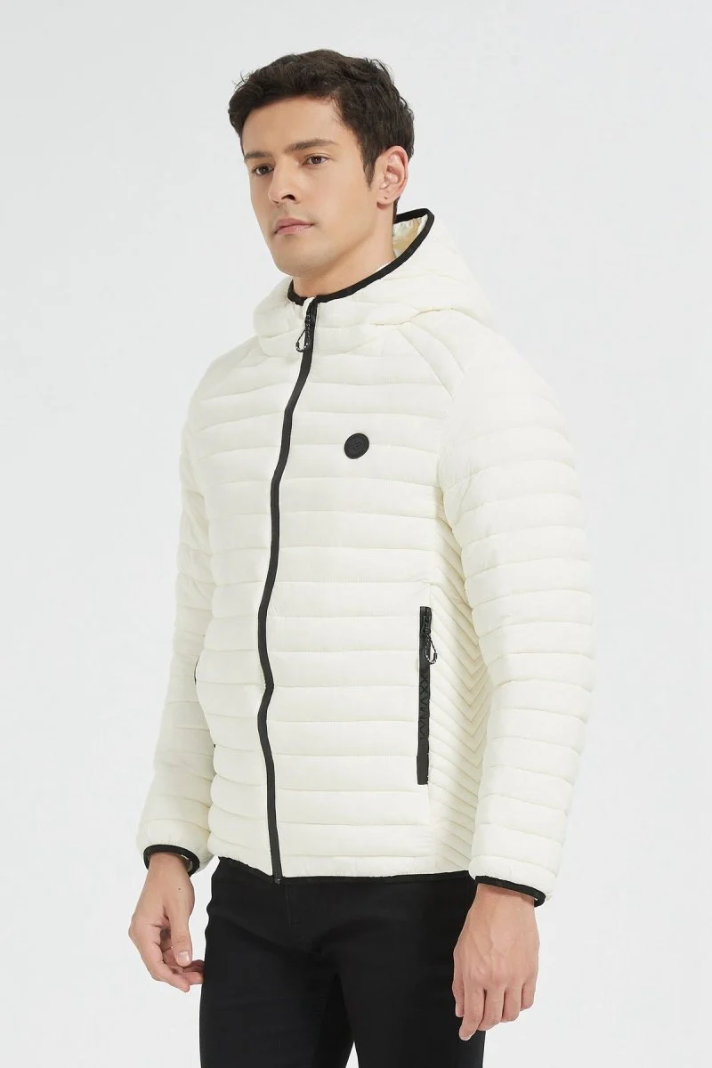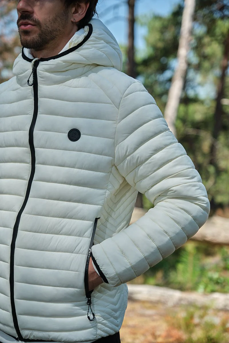 Cette doudoune légère pour la mi-saison se distingue par sa coupe droite et son design épuré. La capuche fixe offre une protection supplémentaire contre les éléments, tandis que les fermetures à glissière noires avec tirettes et biais en caoutchouc ajoutent une touche de modernité. Les deux poches zippées sur les côtés sont pratiques pour ranger vos essentiels, et une poche intérieure à zip assure une sécurité supplémentaire pour vos objets de valeur. Le logotype subtilement placé sur la poitrine, la fermeture et l’ourlet complète ce modèle. La doublure simple garantit un port confortable et léger, parfait pour les journées plus douces.