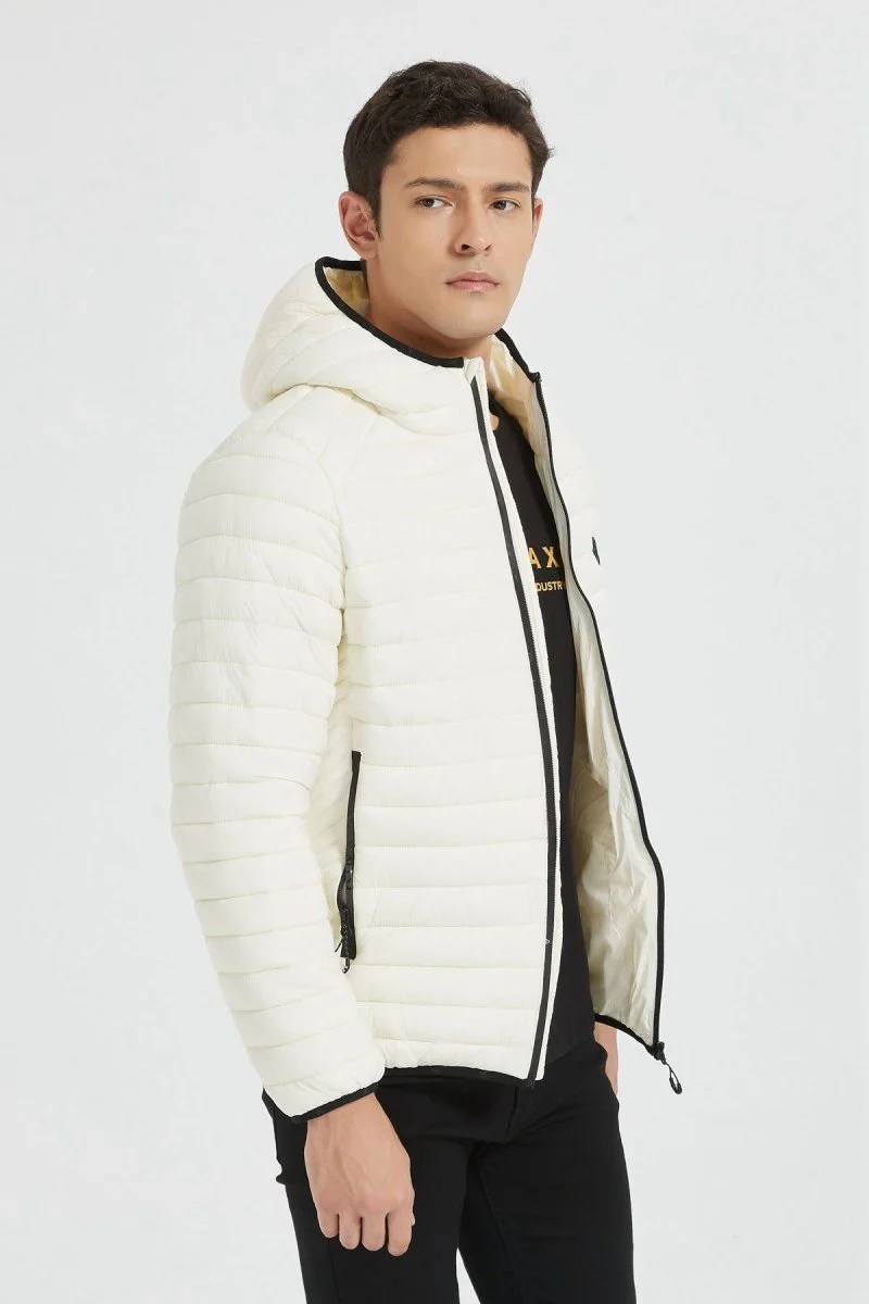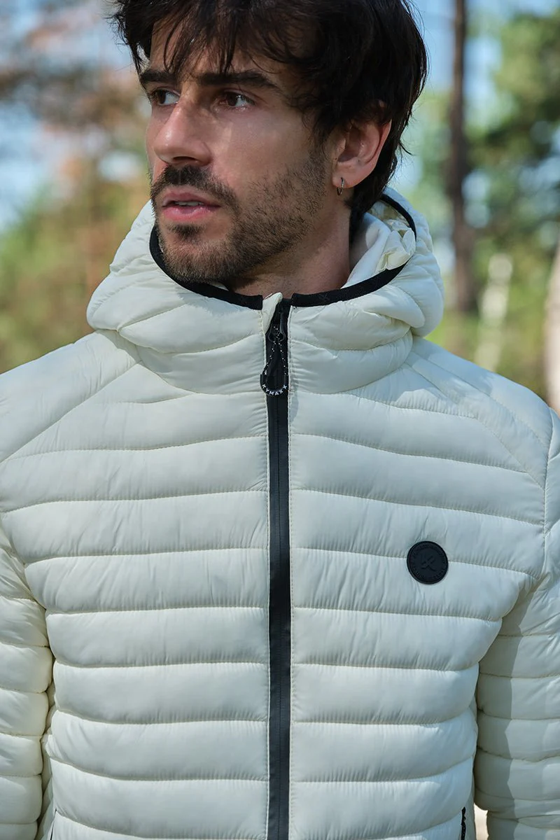 Doudoune légère mi-saison coupe droite. Capuche fixe. Fermetures à glissière noires. Tirettes et biais des fermetures en caoutchouc. 2 poches zippées sur les côtés. Poche intérieure à zip. Logotype sur la poitrine, fermeture et ourlet. Doublure simple.