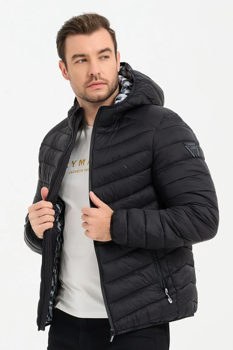 Doudoune cintrée légère et compacte , Matelassage en fines bandes, 2 poches zippées sur les côtés, Logotype Kymaxx sur le bras et sur la poitrine, Un empiècement sur les épaules, Tissu déperlant « Water Repellent Technology »
