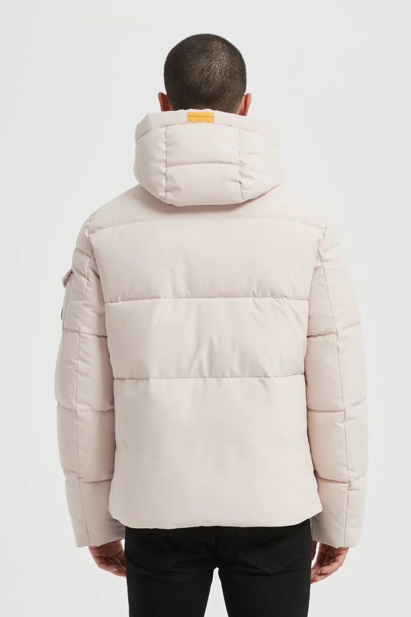 Doudoune homme moderne et structurée, parfaite pour l’hiver. Modèle chaud, matelassé, avec capuche réglable à cordons contrastés. Poches zippées pratiques sur la poitrine et la manche. Fermeture zippée centrale et badge logo sur la manche pour une touche tendance.