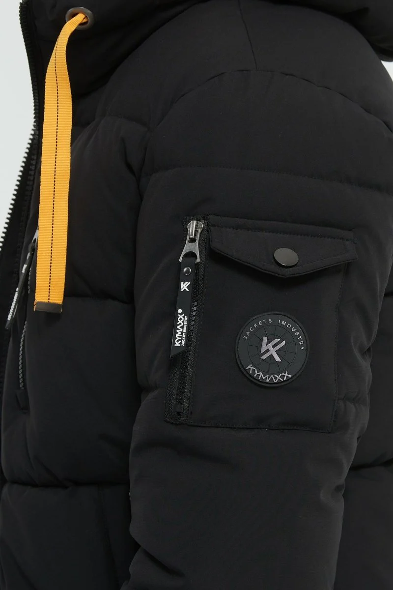 Cette doudoune est idéale pour affronter l’hiver avec style. Elle offre une chaleur optimale grâce à son matelassage épais. Son coloris Noir est rehaussé par des cordons contrastés jaunes, apportant une touche moderne. Pratique au quotidien, elle dispose de plusieurs poches zippées, dont une sur la manche avec rabat. Le badge logo sur la manche complète son look urbain et tendance.