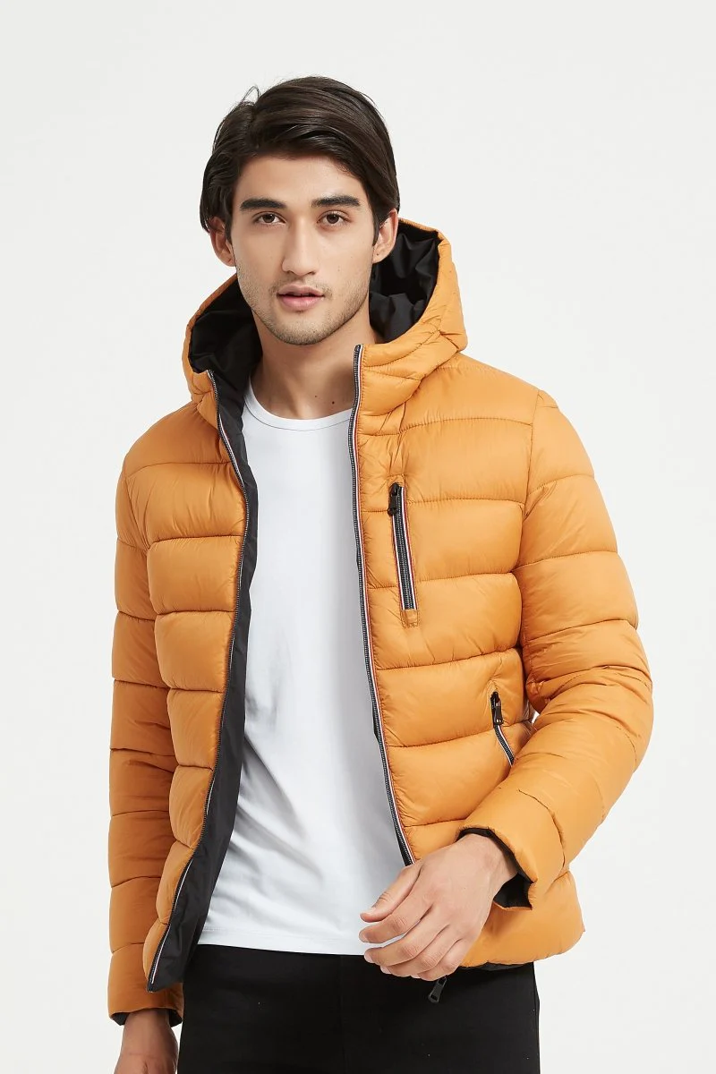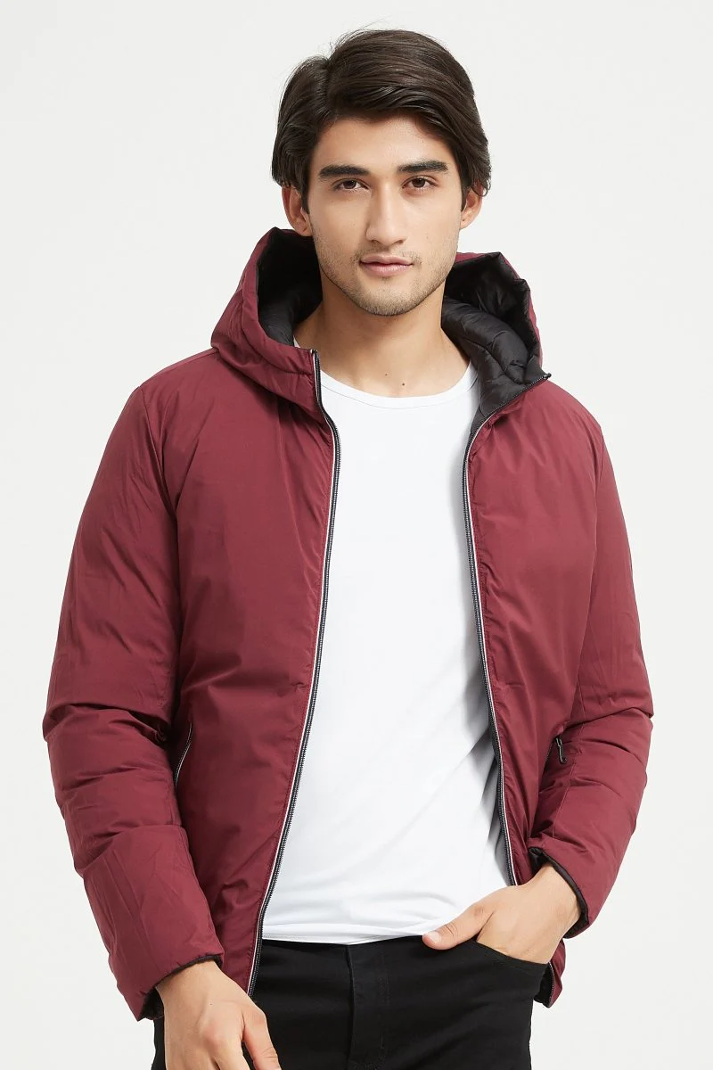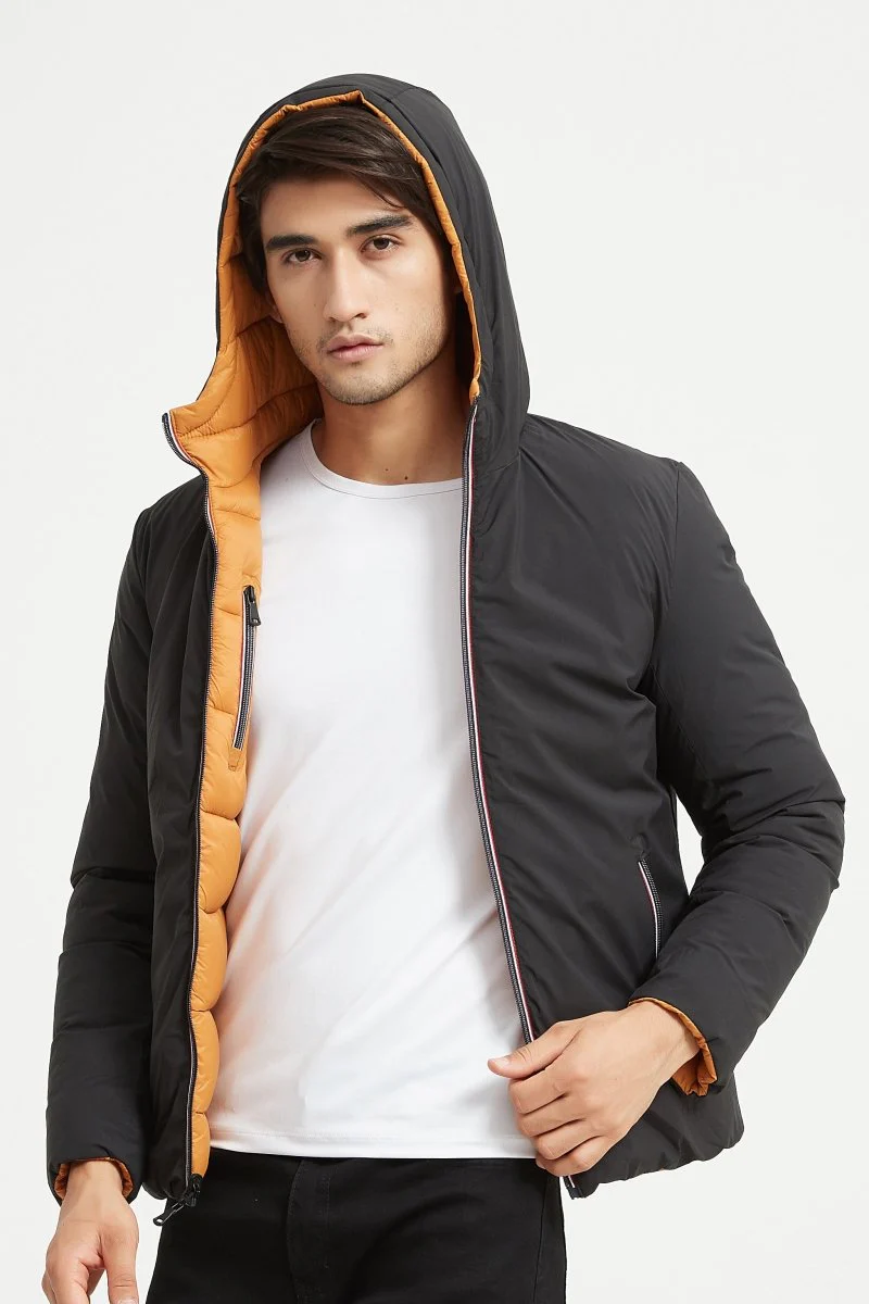 Une doudoune à capuche réversible en blouson de ski pour homme
