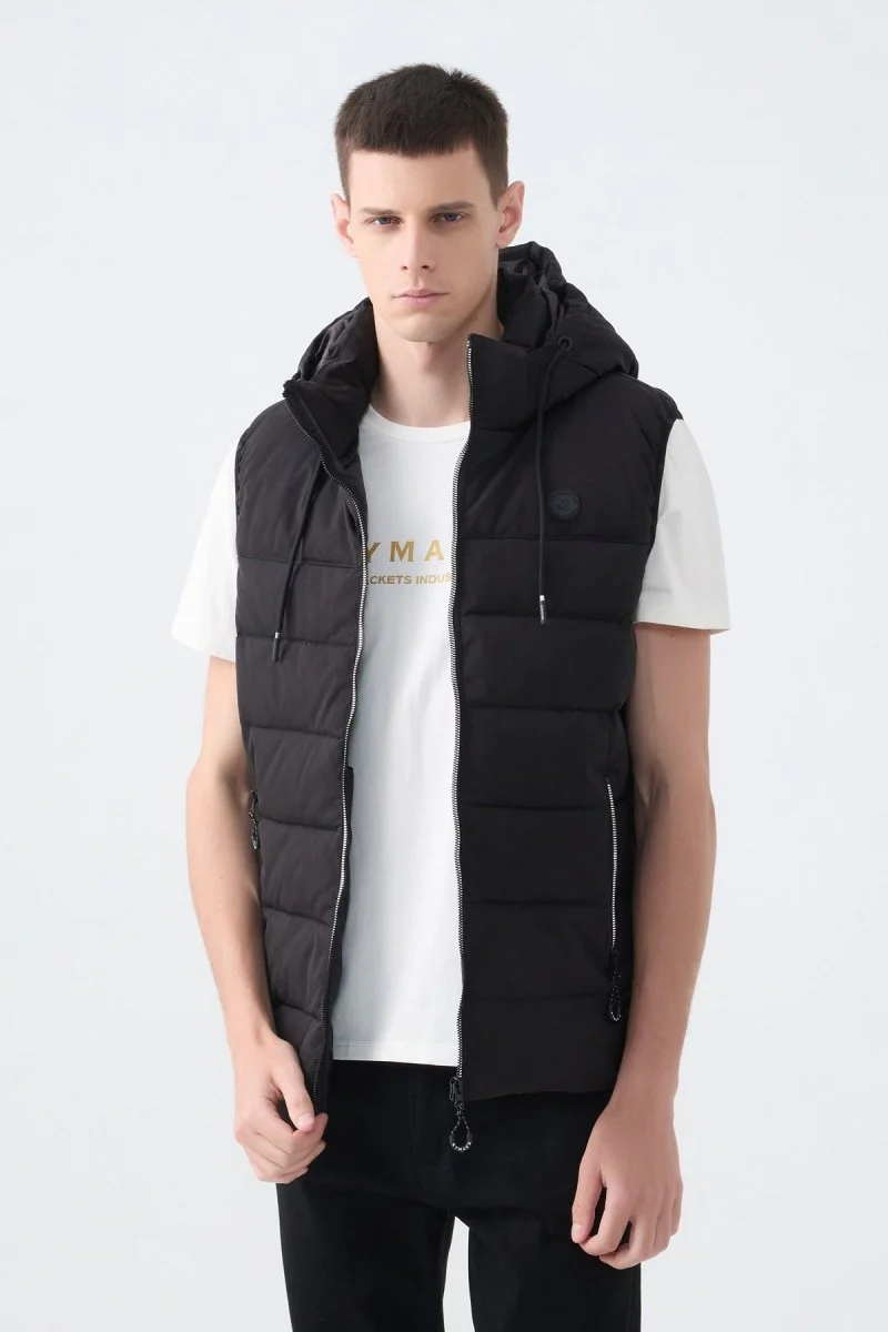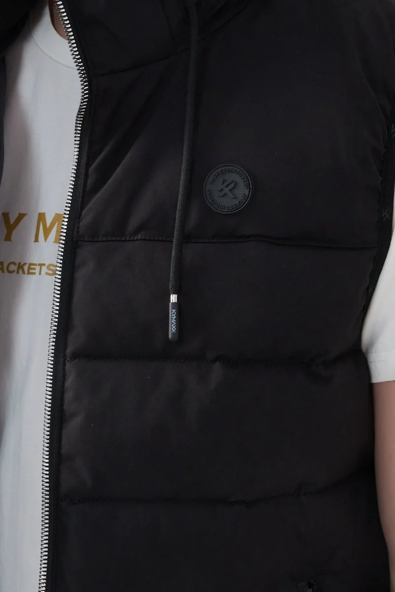 Doudoune sans manches, modèle mi-saison léger et compact, Coupe droite, Col montant couvrant, Piqûres en bandes moyennes, Tissu déperlant « Technology Water Repellent », 2 poches zippées sur les côtés, Doublure assortie avec 3 poches intérieure dont une à fermeture éclair, Fermeture éclair de matière plastique argenté, Logotype KYMAXX sur la poitrine, les tirettes, les ourlets.