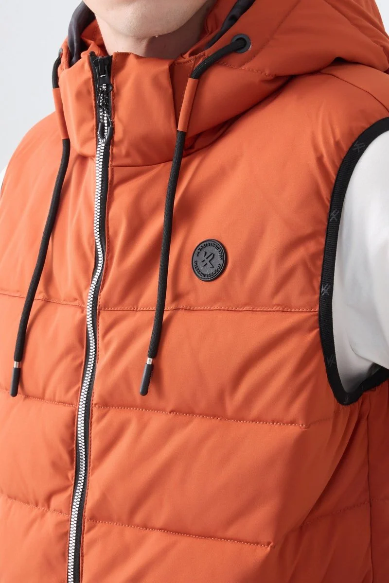 Doudoune sans manches, modèle mi-saison léger et compact, Coupe droite, Col montant couvrant, Piqûres en bandes moyennes, Tissu déperlant « Technology Water Repellent », 2 poches zippées sur les côtés, Doublure assortie avec 3 poches intérieure dont une à fermeture éclair, Fermeture éclair de matière plastique argenté, Logotype KYMAXX sur la poitrine, les tirettes, les ourlets.