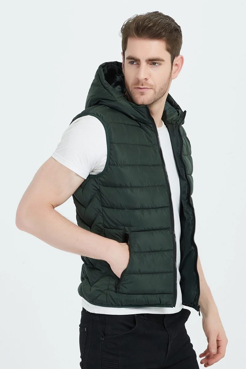 Doudoune sans manches matelassée. Tissu déperlant toucher doux. Ourlet léger sur les extrémités d’épaules et à la taille. Col montant avec capuche cagoule. Fermeture à glissière métallisée. Poches zippées sur les côtés . Doublure assortie. Une poche intérieure.