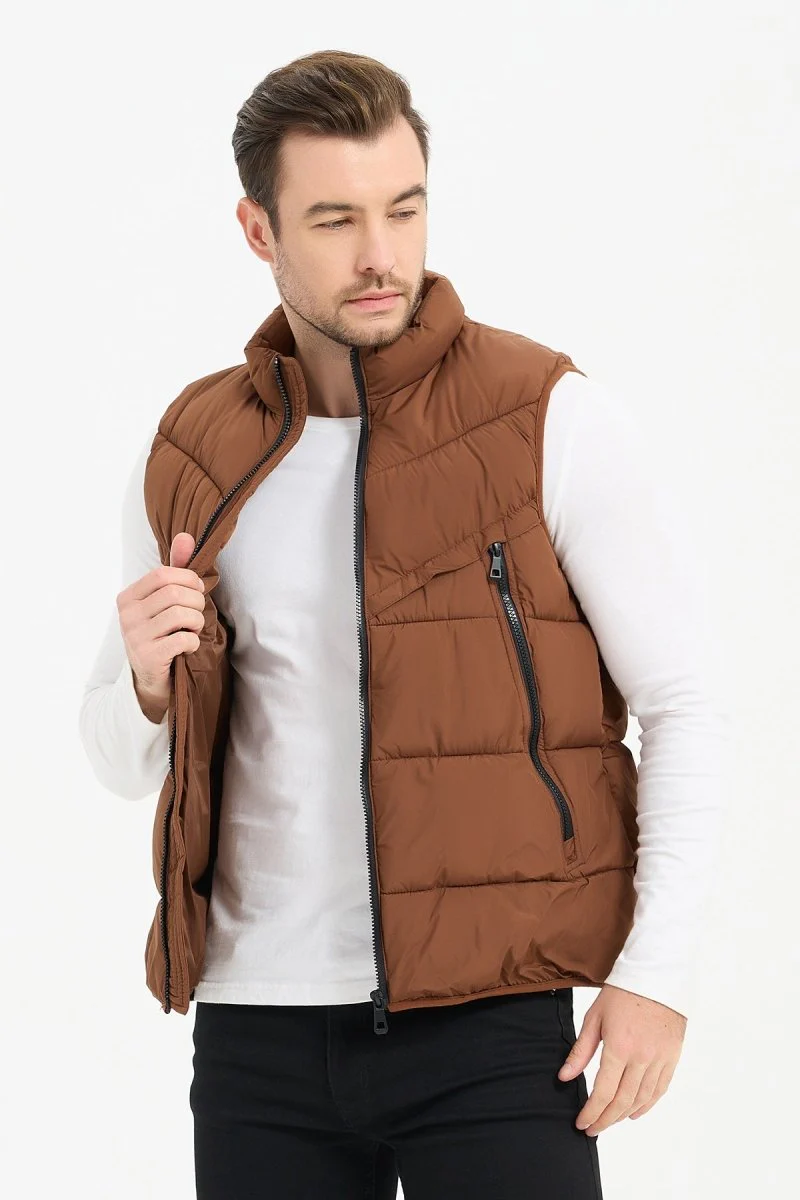 Doudoune sans manches ,Modèle matelassé de mi-saison, Tissu déperlant « »Water Repellent Technology » »,Détails et finitions de couleur contrastée, Col montant couvrant,2 poches zippées oversizes, Une poche intérieur gauche à scratch.