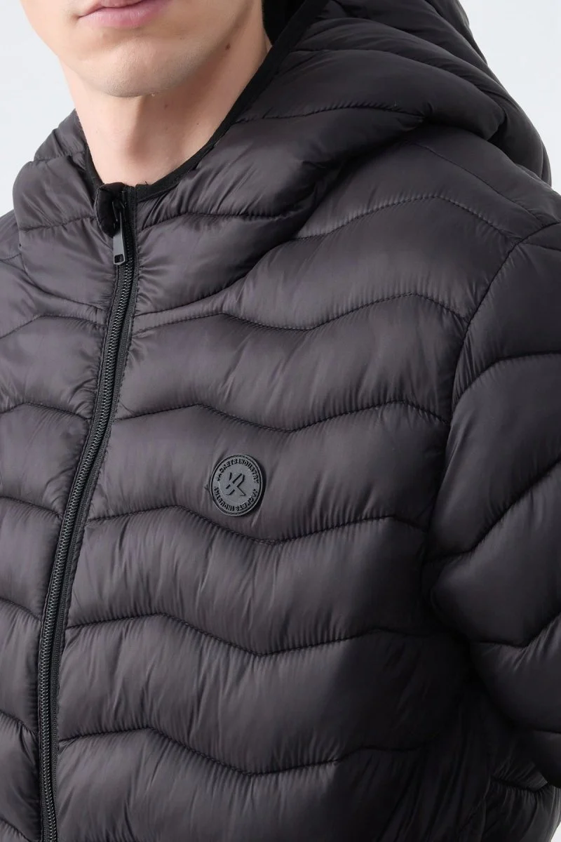 Doudoune légère mi-saison. Capuche fixe intégrée et col montant couvrant. Fermetures à glissière noires. Logotype Kymaxx sur le torse. 2 poches zippées sur les côtés. Doublure simple. 2 poches intérieures. Tissu déperlant « Technologie Water Repellent ». Piqûres en bandes zigzag.