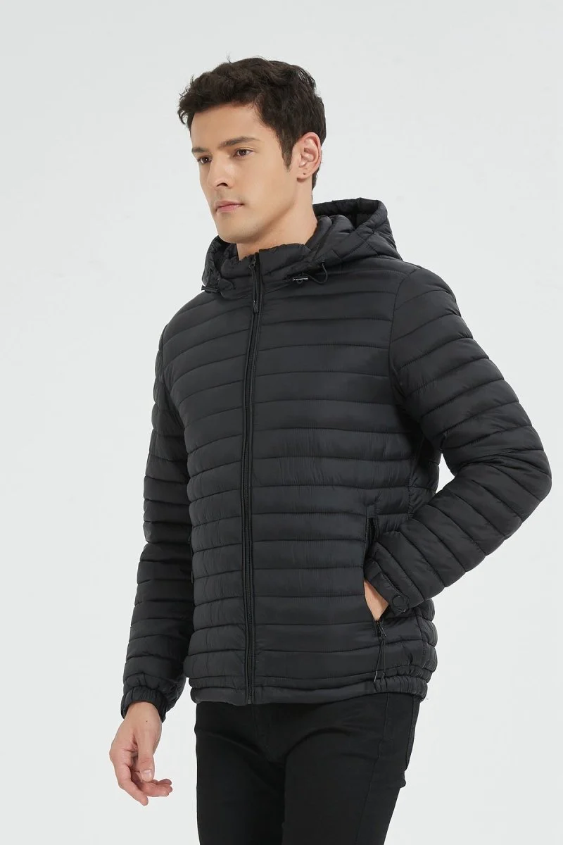 Doudoune légère mi-saison. coupe droite. Col montant couvrant. Capuche amovible par zip. Fermetures à glissière noires. 2 poches zippées sur les côtés. 1 Poche zippé intérieure, doublure fourrée, doublure simple au niveau de manche et capuche. Poignet avec bouton pression.