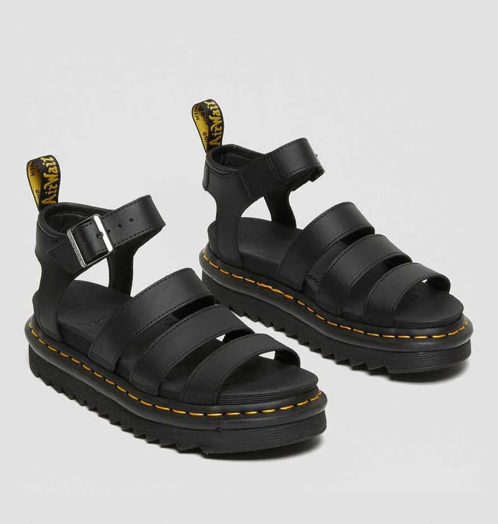 Dr. Martens Blaire Black Hydro Leather sont fabriquées en cuir hydrofuge de qualité supérieure avec une semelle en caoutchouc résistante à l’usure pour une adhérence maximale. Les sandales femme Blaire Hydro sont également une alternative populaire pour leur qualité et leur style intemporel.