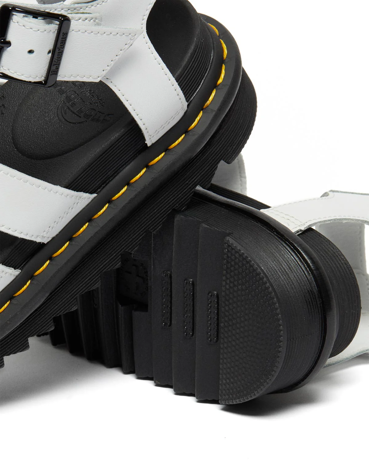 Les sandales Dr. Martens à l’esprit spartiate, les Blaire Hydro, montées sur les semelles légères en date, sont parfaites pour attirer tous les regards sur soi cet été. Ces sandales, bénéficiant du montage Goodyear, sont dotées d’une semelle légère, crantée et compensée ainsi que d’un col rembourré pour plus de confort.