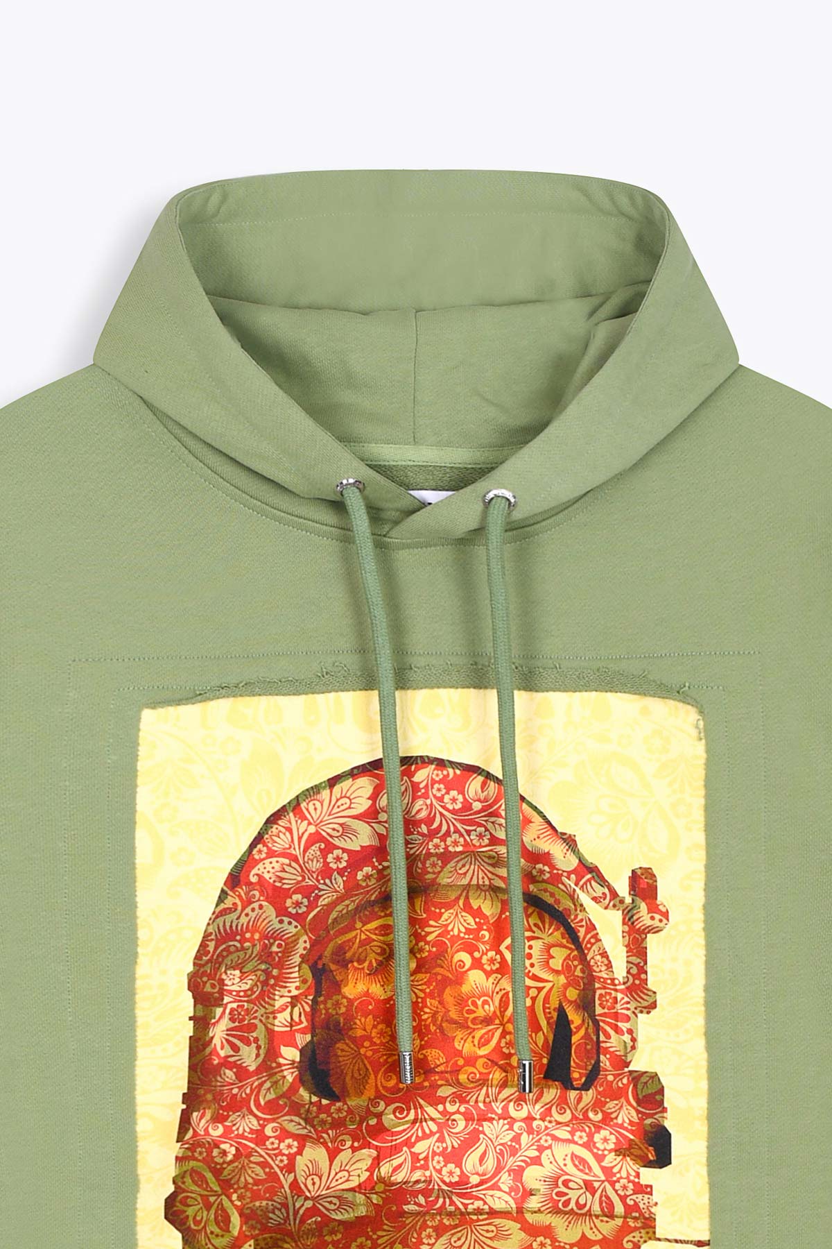 Ce sweat à capuche de couleur vert kaki est doté de manches longues et de poignets côtelés, ainsi que d’une broderie du logo en dentelle.