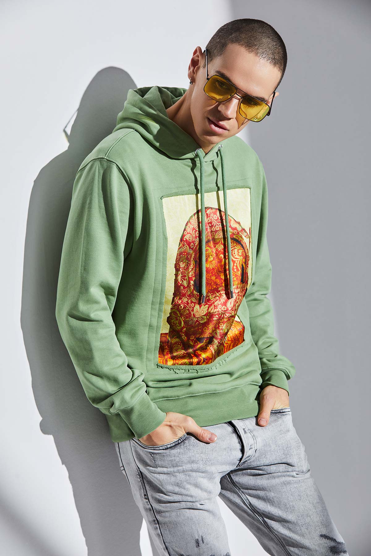 Cette pièce est confectionnée en coton French Terry d’un poids de 480 grammes et peut être associée, par exemple, à un jean ou un pantalon cargo.
