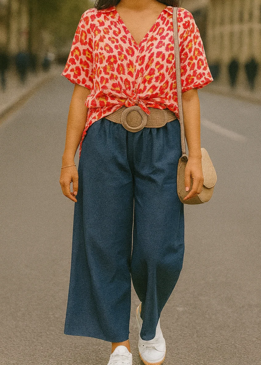 - Taille : Élastiquée avec lien à nouer