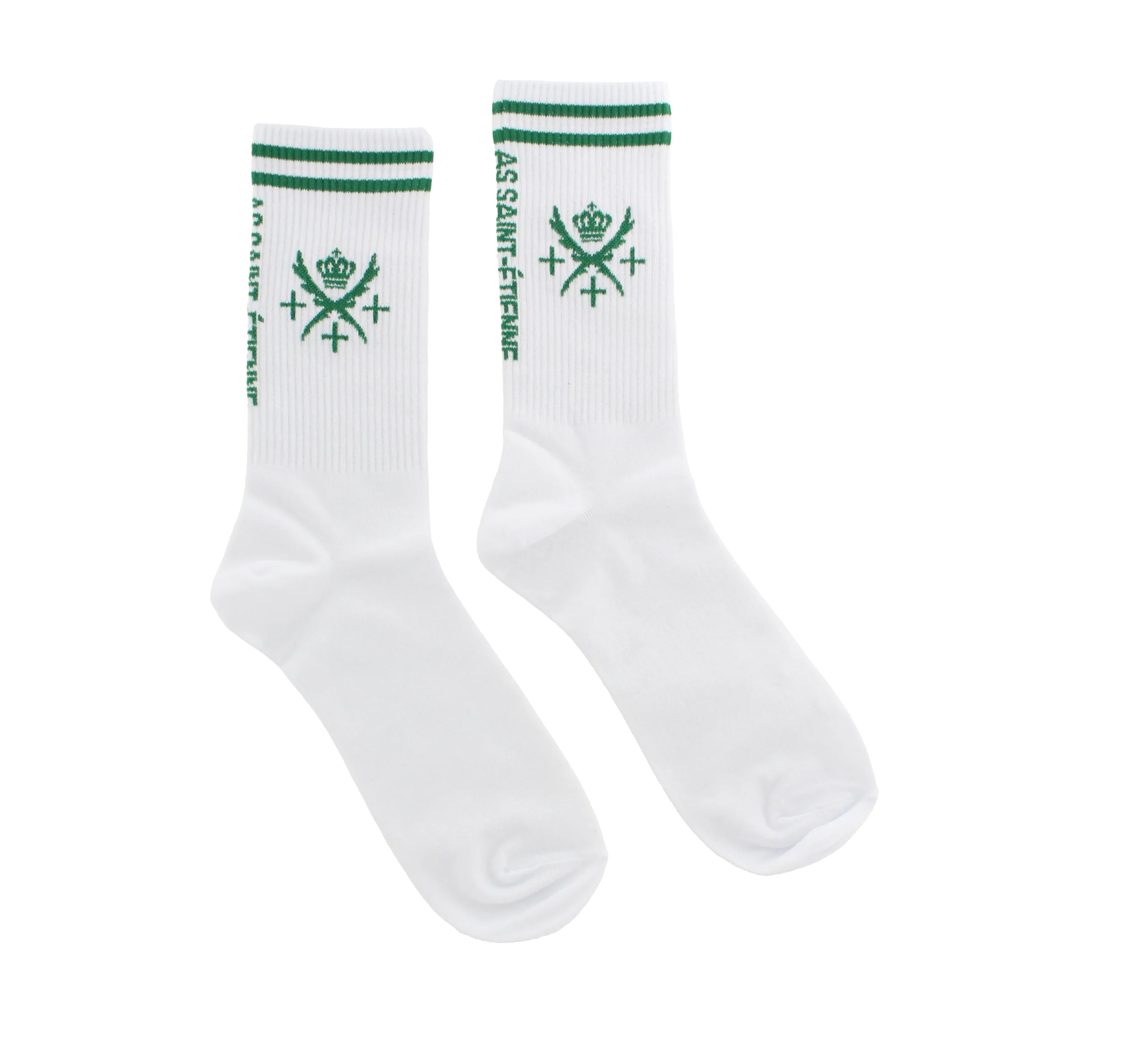 Complétez votre tenue de fan de l’AS Saint-Étienne avec ce lot de 3 chaussettes aux couleurs emblématiques du club. Blanches, vertes et noires, ces chaussettes affirment votre soutien avec les armoiries de la ville et le marquage AS SAINT-ÉTIENNE.