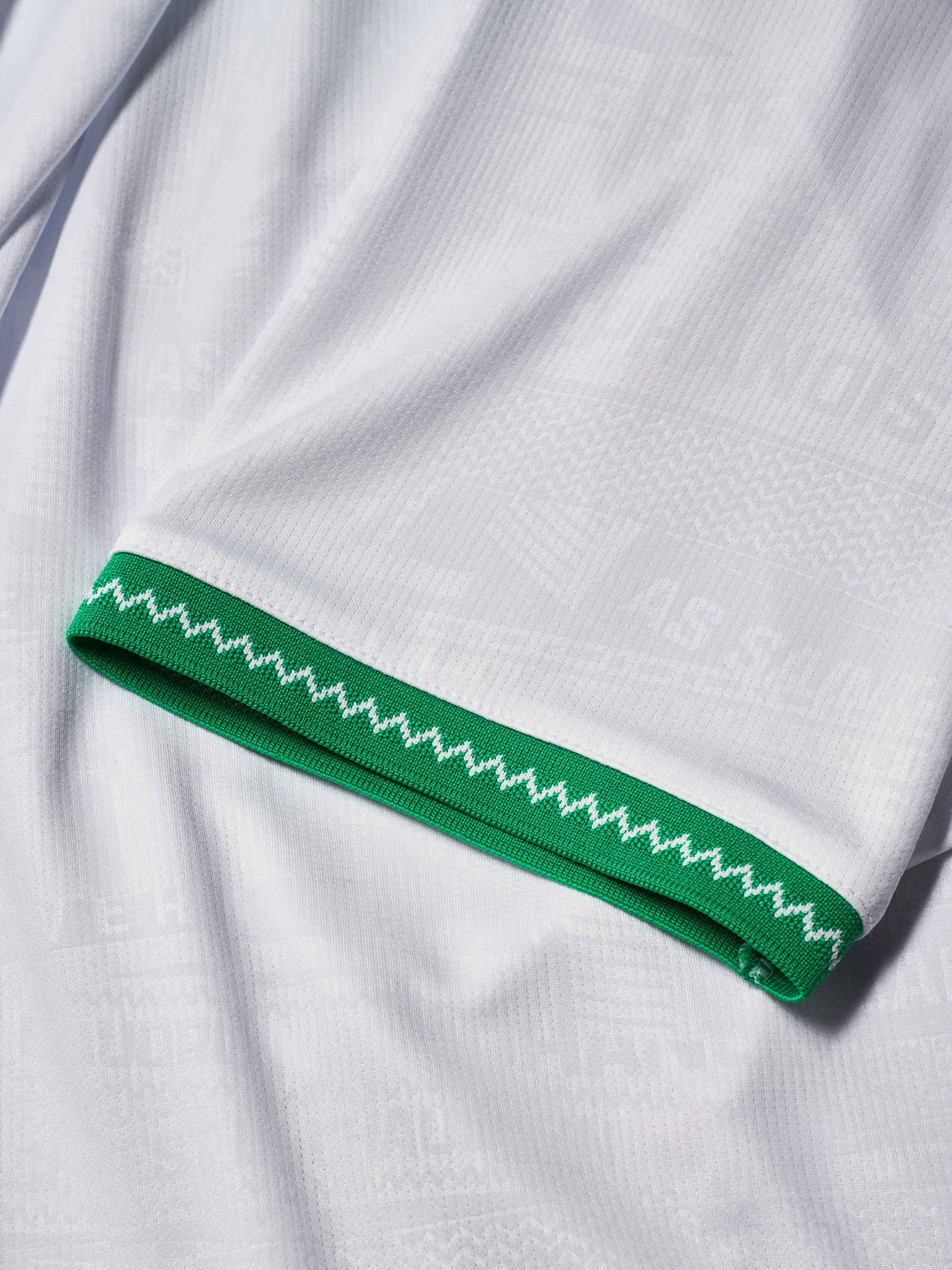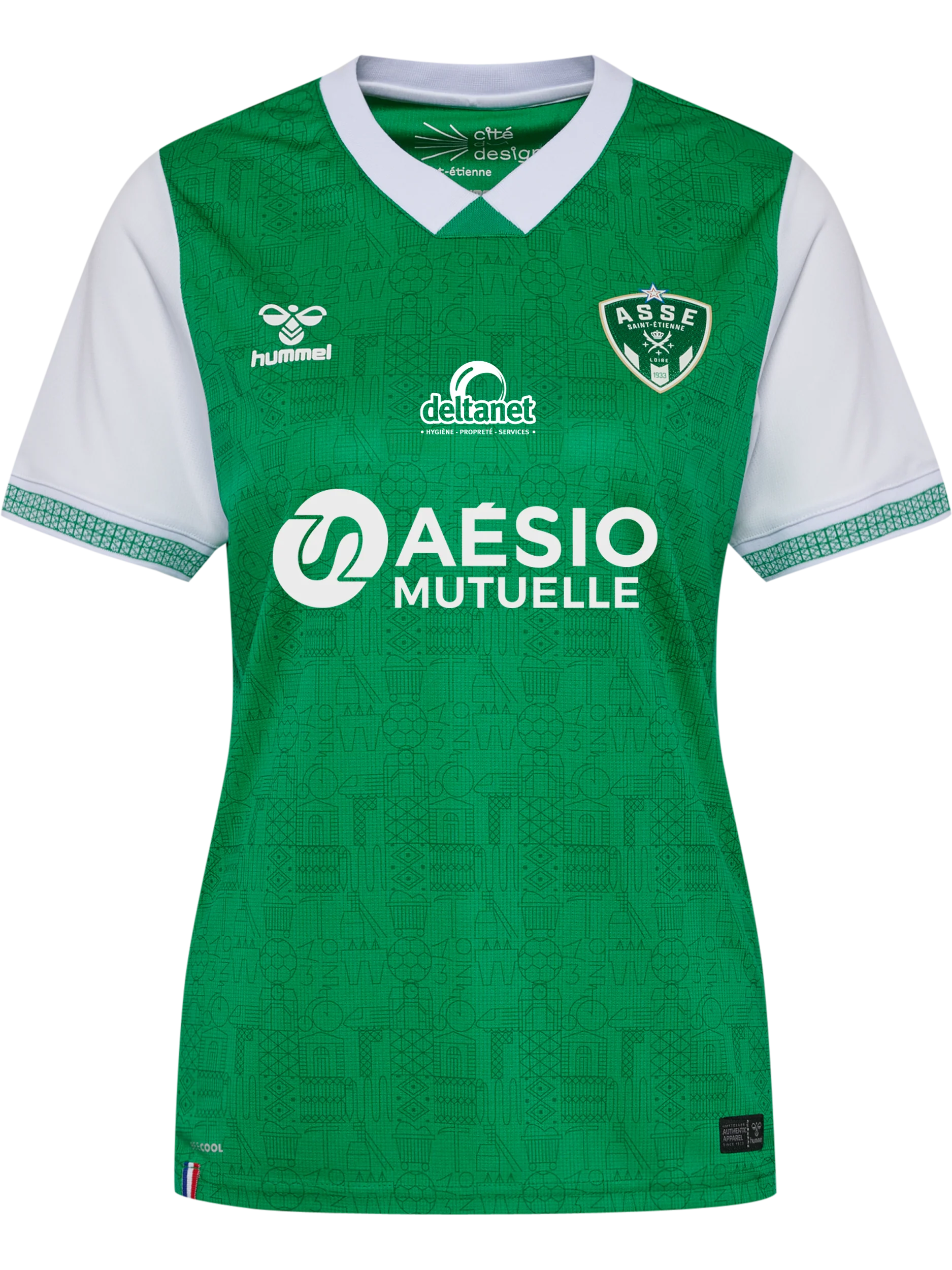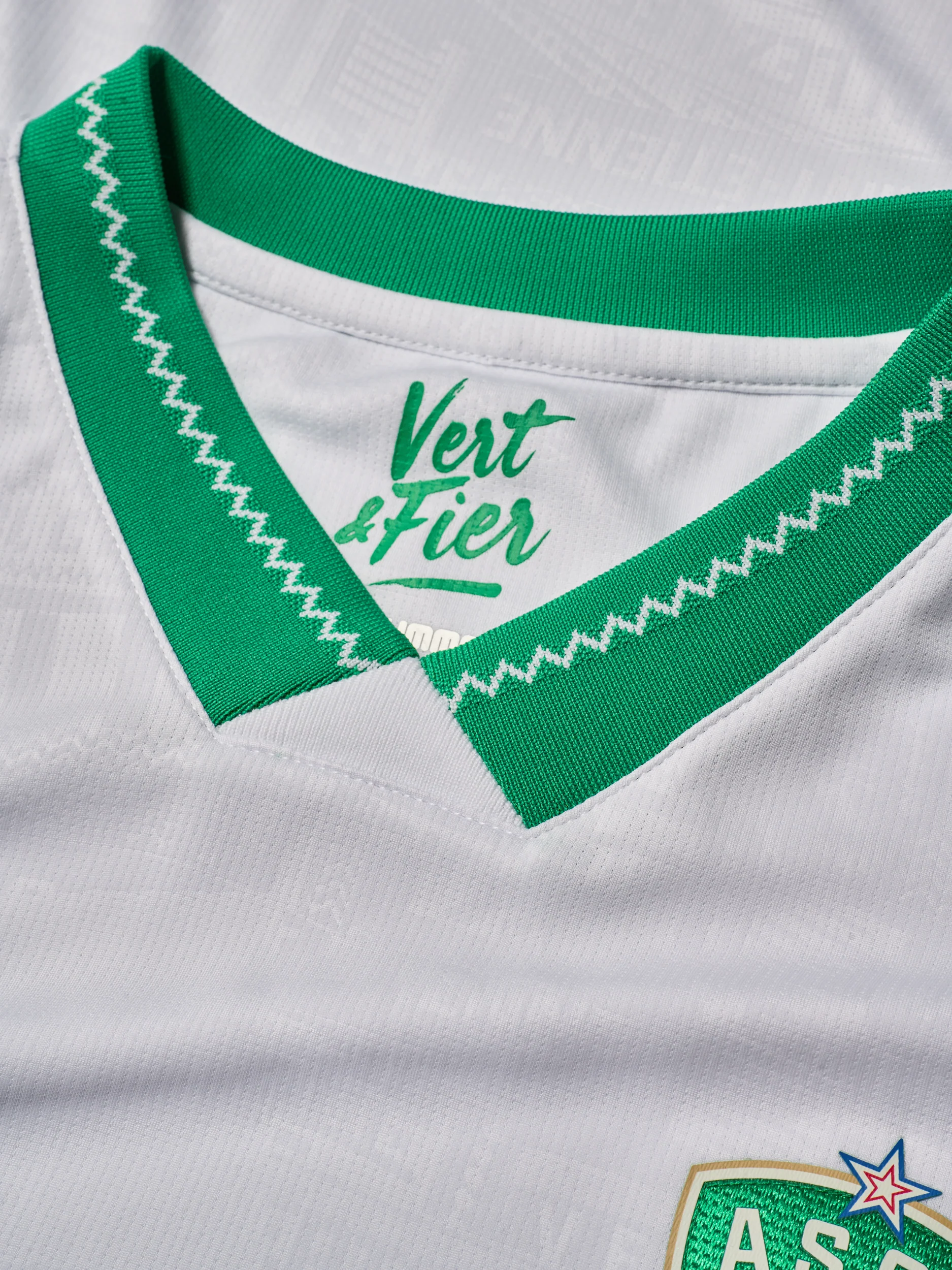 Et c’est elle qui en parle le mieux. « Ce maillot est un hommage vibrant à celles et ceux sans qui le club ne serait pas ce qu’il est : ses supporters, raconte la talentueuse styliste. Ceux qui chantent à Geoffroy-Guichard, bien sûr, mais surtout ceux qui suivent les Verts dans tous leurs déplacements, par tous les temps, match après match, saison après saison. Ceux qui transforment les parcages visiteurs en petits bouts de Chaudron. J’ai imaginé ce maillot comme une tribune textile où l’on découvre un motif embossé représentant un mur d’écharpes, de drapeaux, de messages, autant de symboles forts des tribunes stéphanoises. Ce travail en relief permet au tissu de vibrer presque comme un chant collectif, apportant de la texture, de la profondeur et de l’émotion. Chaque élément raconte une histoire. Sur le col et les manches, une ligne reprend les codes visuels de la célèbre écharpe zigzag brandie dans les stades. Un clin d’œil graphique, discret mais assumé, à ces objets fétiches que l’on serre, que l’on lève, que l’on transmet parfois. Des symboles de fidélité inébranlable, même dans les moments les plus durs. Ce maillot, c’est un hommage aux supporters des Verts, ceux qui sont là, toujours. C’est un rappel que l’esprit stéphanois ne se limite pas à une enceinte, mais qu’il voyage, qu’il se vit et se crie partout.«