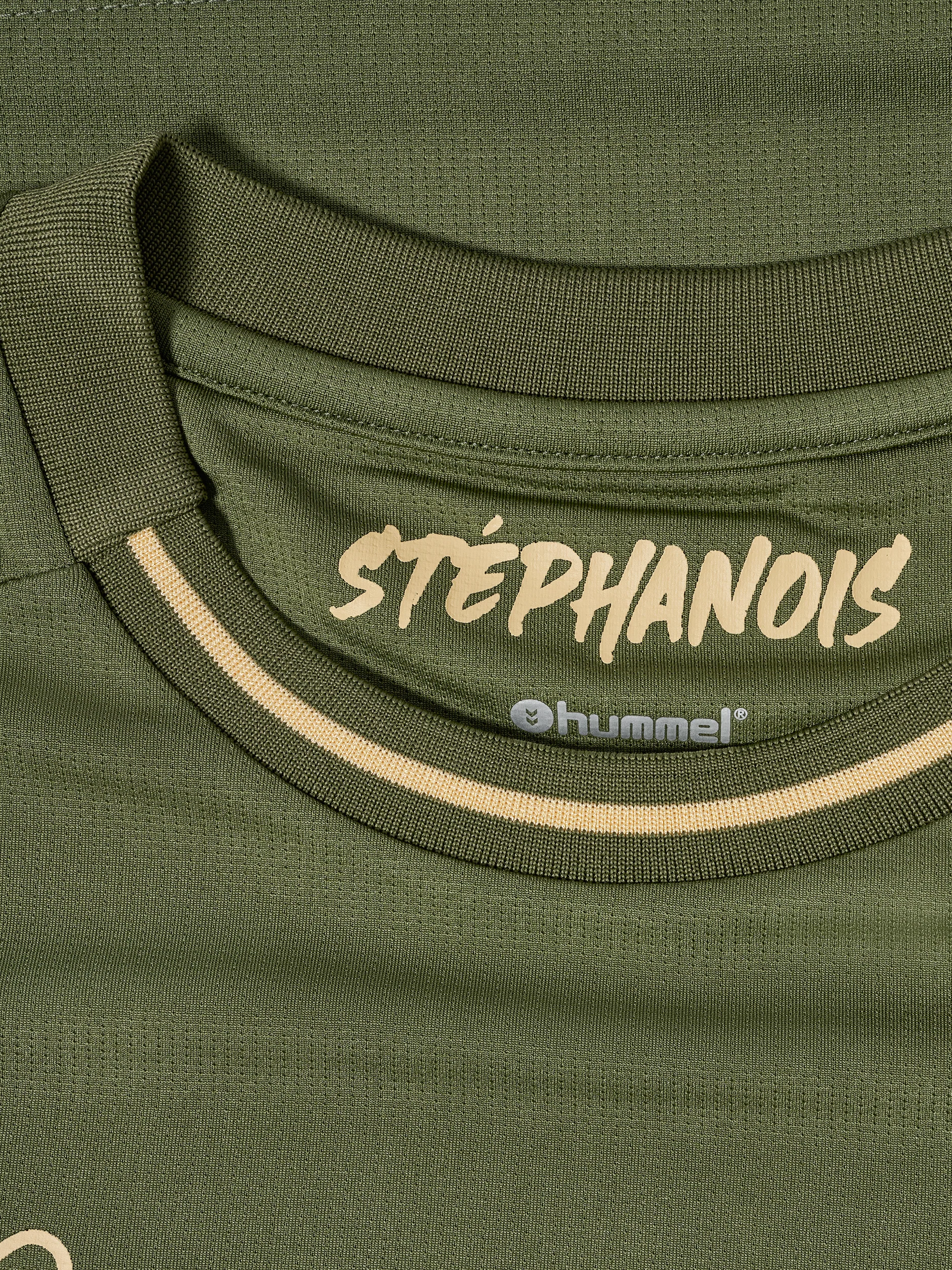 Sobre et élégante, la nouvelle tenue third se dévoile dans un vert kaki des plus tendance. Ce même ton que les joueurs et joueuses ont déjà laissé voir sur leurs tenues de sortie, déjà remarquées et soulignées par leurs supporters. Sublimé par le logo enrichi, ce maillot se porte au stade, et partout ailleurs, par tous les amoureux du Vert et des Verts.