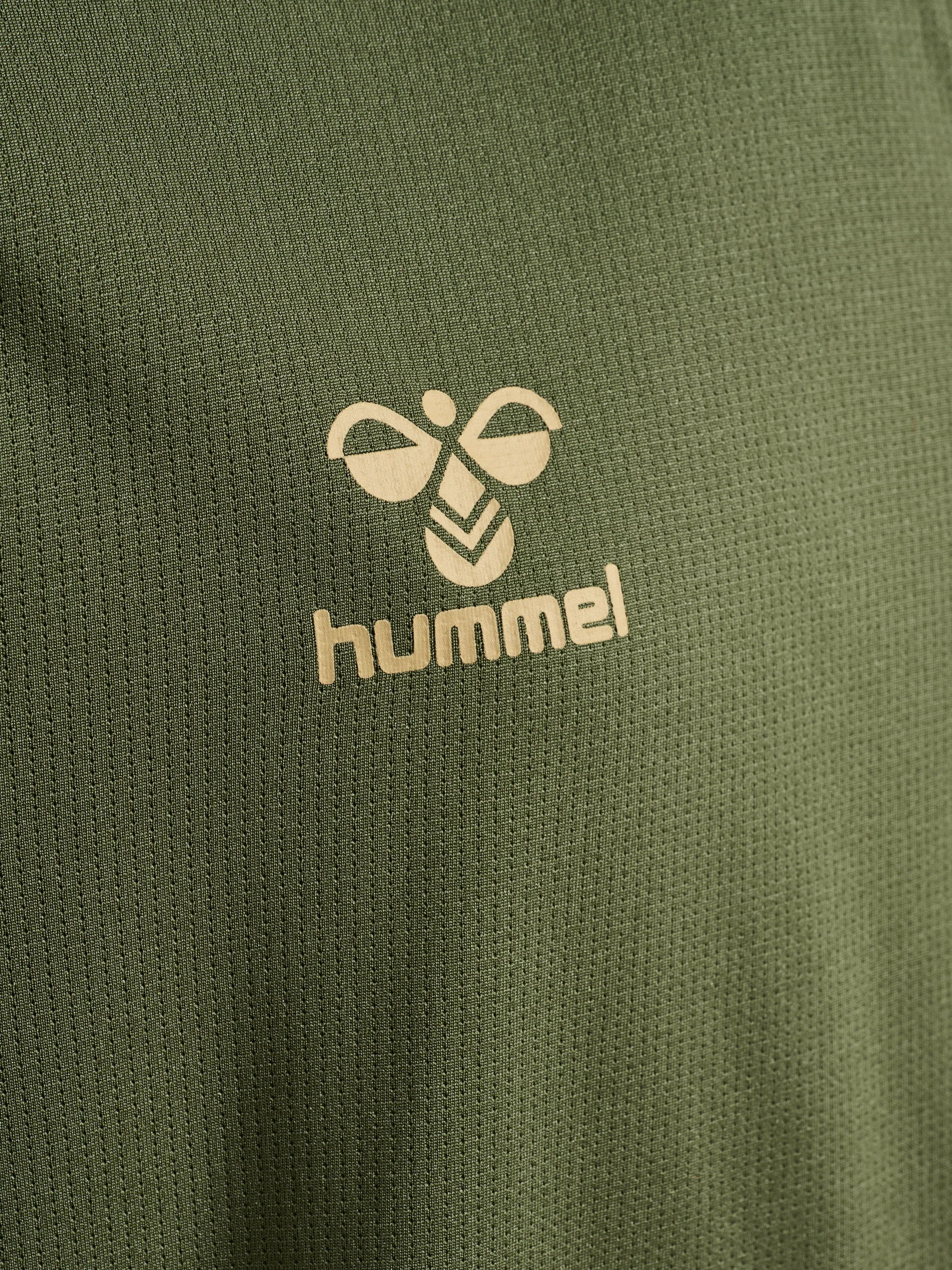 Également disponible en version manches longues, il est complété par un short et des chaussettes kaki aux détails beiges dans une tunique uniforme.