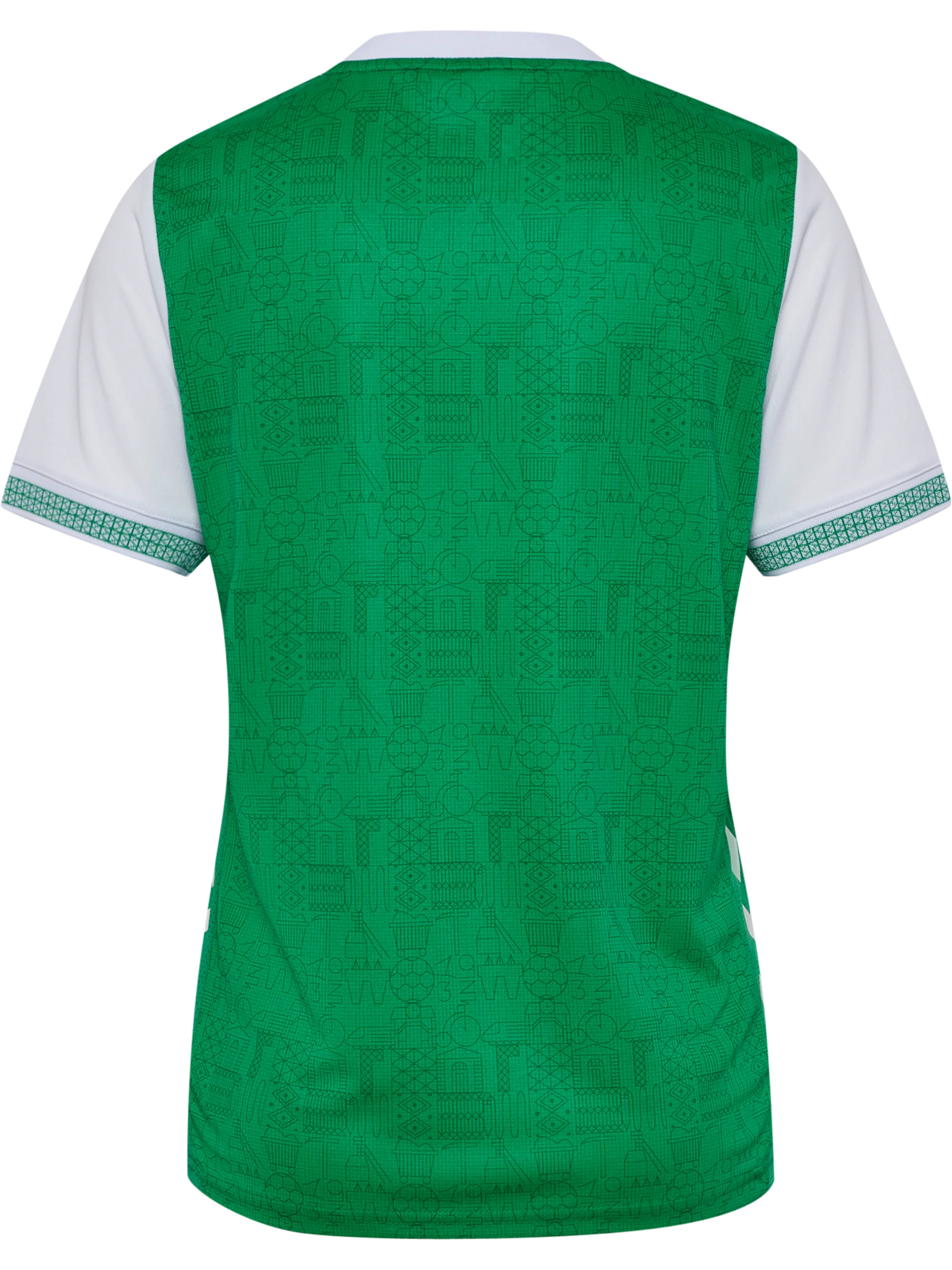 Découvrez ce maillot domicile qui incarne l’histoire, la mémoire et l’identité de Saint-Étienne. Cinq lignes de pictogrammes créés par le studio vu-huu pour la nouvelle identité graphique de la Cité du design racontent un héritage commun sur les deux faces du maillot. De la rubanerie, savoir-faire emblématique de Saint-Étienne, à la mine, pilier de l’histoire collective, en passant par les bâtiments de la Cité du design, installée sur le site de l’ancienne manufacture d’armes, les transports et les cycles, en lien avec l’histoire industrielle, ainsi que, bien évidemment le club étoilé, tous les marqueurs forts de l’identité stéphanoise ornent l’avant et l’arrière du nouveau maillot des Verts.